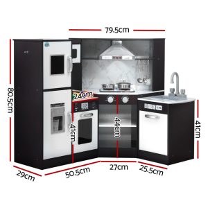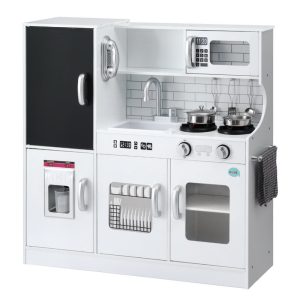 Keezi Kids Wooden Pretend Kitchen Play Set Cooking Toys Pot Ice Cup Oven Blackboard 80CM White
