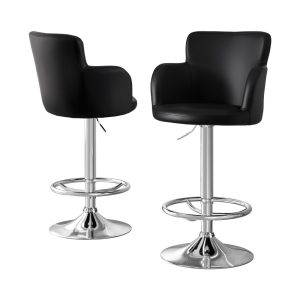 Artiss 2x Leather Bar Stools Swivel Adjustable Gas Lift PU Counter Chairs Black
