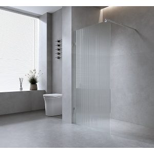 110cm Reeded Single Shower Glass Screen with Nickel Wall Channel