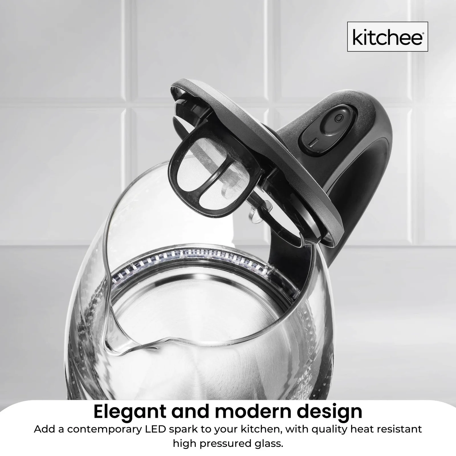 This timeless, elegant and stylish full glass kettle by Kitchee, does not just add a contemporary LED spark to your kitchen, but delivers a much healthier way to make a cuppa in quality heat resistant high pressured glass.