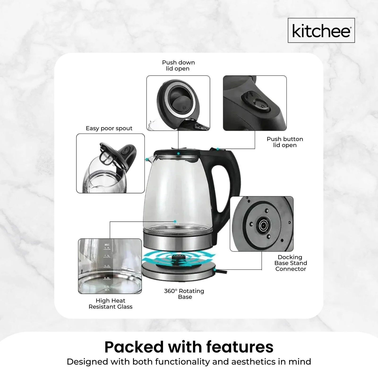 Constructed with tempered glass body, with built in automatic shut off when water level is too low, so that you can be rest assured that this is a quality kitchen appliance.