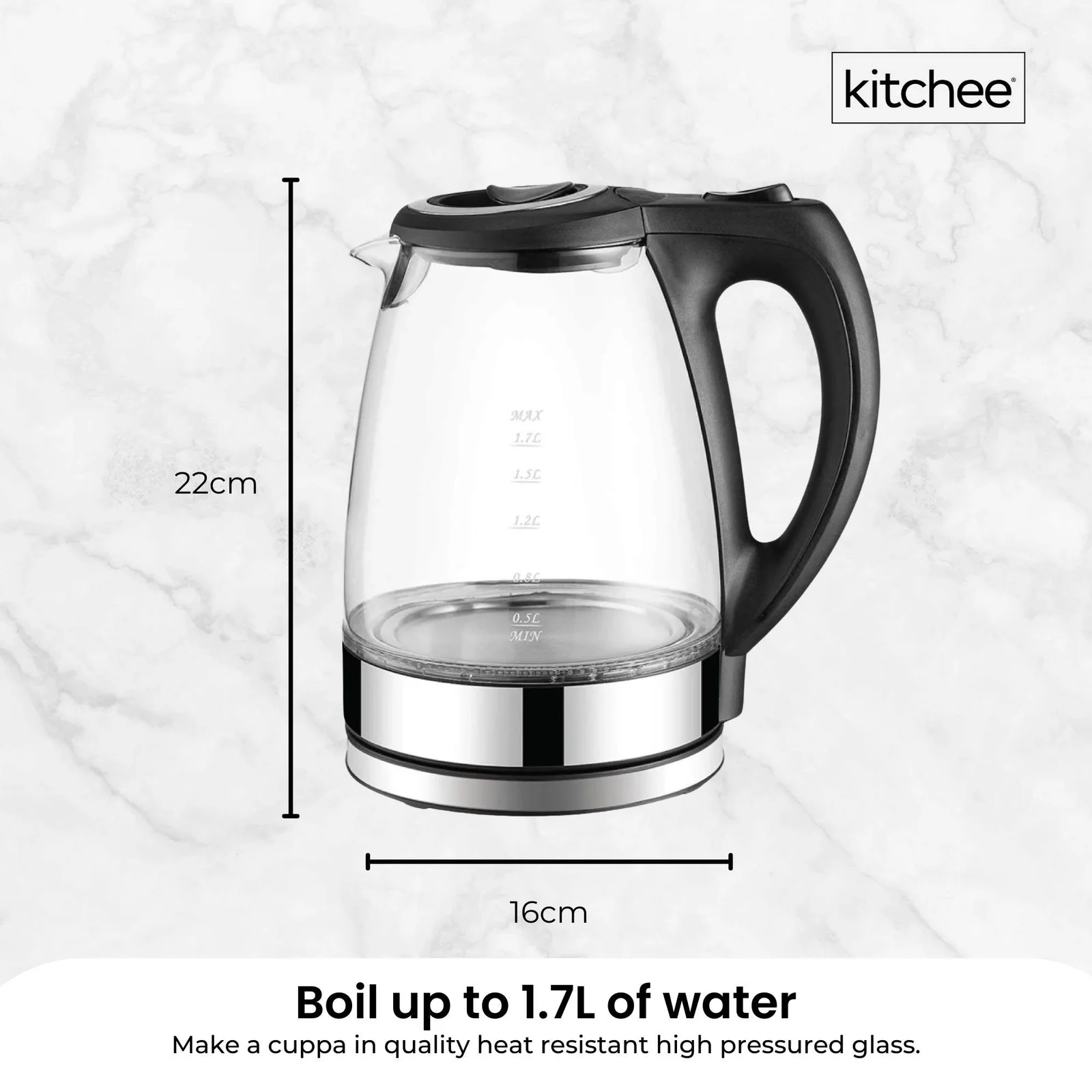 1x 1.7L Glass Kitchee Kettle Black.