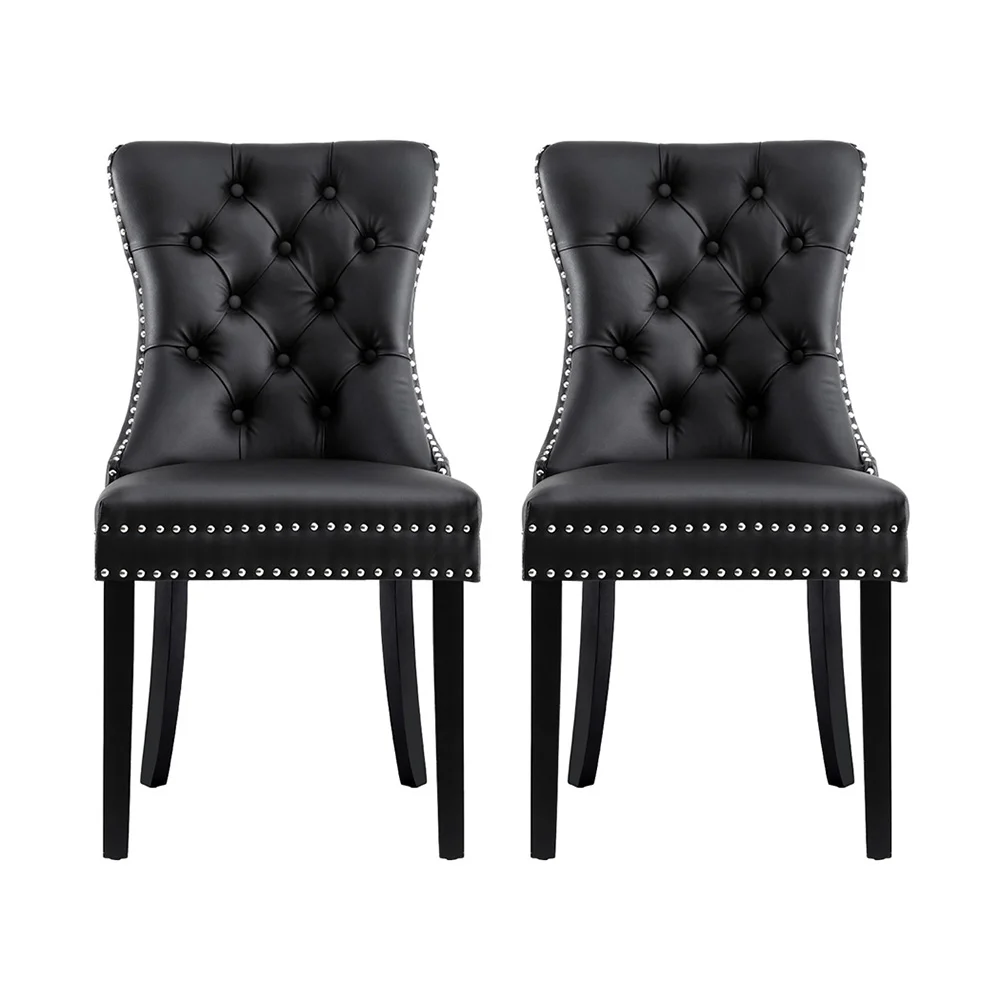 Elevate your dining space with this set of 2 Artiss Dining Chairs, designed to bring timeless charm to your home. Upholstered in your choice of PU leather or plush velvet, the chairs feature a button-tufted backrest and rivet edging for a sophisticated look. Crafted with a cushioned backrest filled with high-resilience foam, these chairs provide exceptional comfort during meals and gatherings. The rubberwood legs ensure reliable support, while anti-slip feet protect your floors. Perfectly blending style and practicality, these dining chairs make a stunning addition to any dining room.