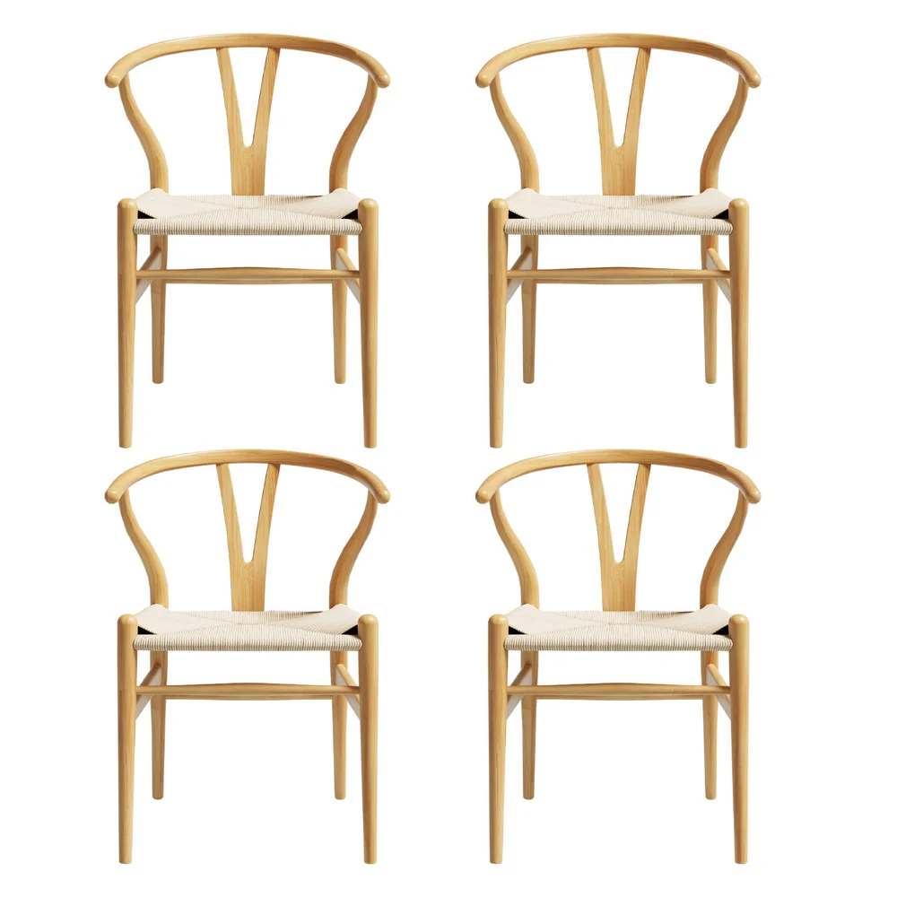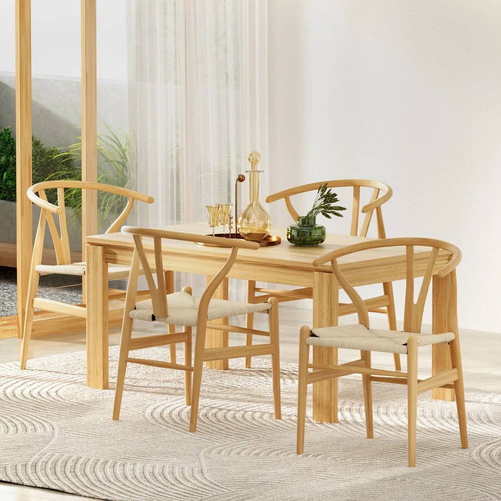 Dine in style with the Artiss Wishbone Dining Chair. Expertly crafted by skilled artisans, this chair features a contemporary silhouette that suits any interior style. The burnished rubberwood frame ensures a strong and durable structure that can withstand daily use, while the kraft paper seat offers a unique and stylish touch. The seat is ergonomically designed to provide maximum comfort, with its curved shape and smooth finish. The backrest features the classic 'wishbone' shape, which provides both form and function, ensuring proper posture and support. The braided seat is designed to be comfortable, elastic and breathable, and has a weight capacity of 120kg. Anti-slip floor protectors keep the chair sturdy and prevent scratches on your floors. The combination of rubberwood and kraft paper makes this chair lightweight, comfortable, and visually appealing. Brighten up your home décor with the Artiss Wishbone Dining Chair today.