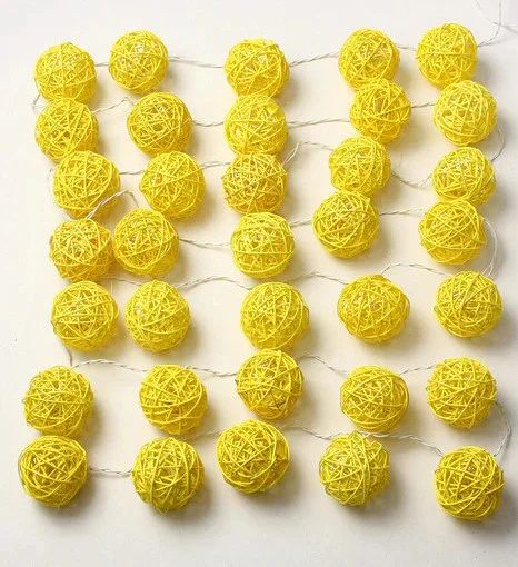 Yellow Rattan Ball String Fairy lights