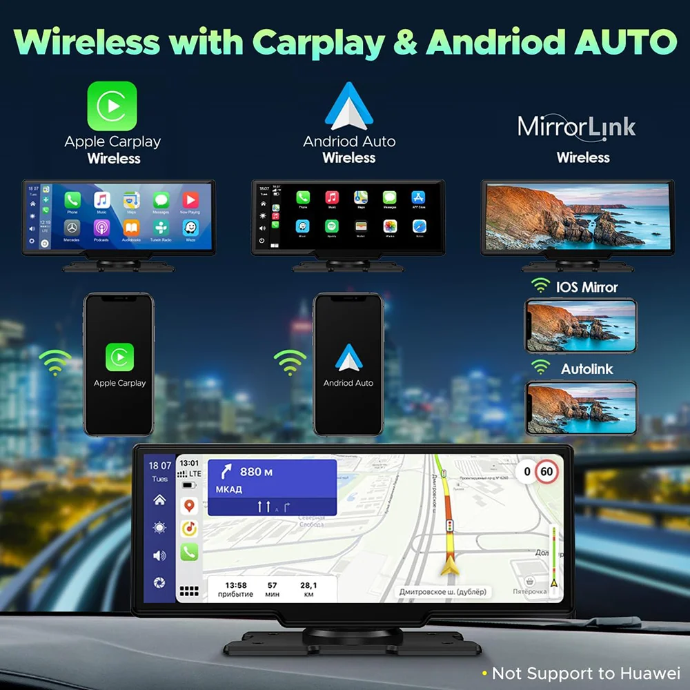 【Wireless Apple CarPlay and Android Auto】This car multimedia monitor is compatible with wireless Apple Carplay, wireless Android Auto function.