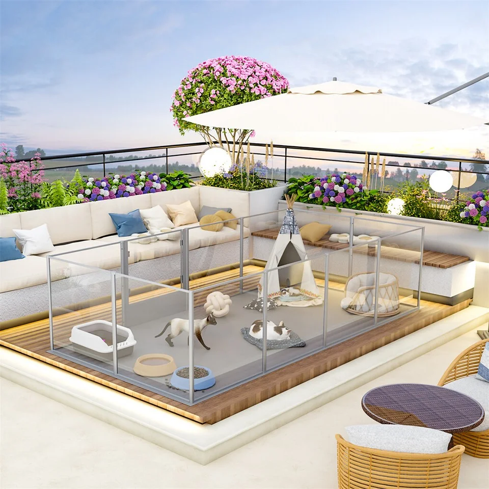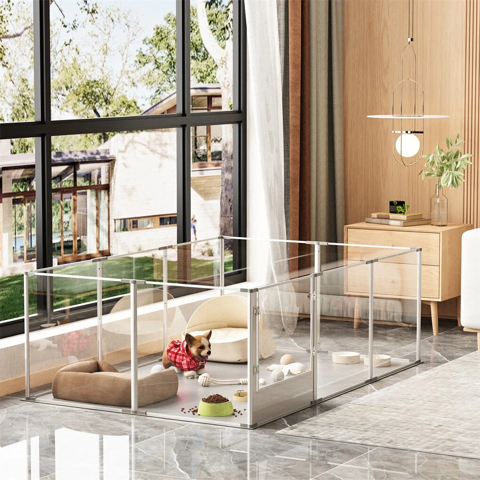 - Crystal-clear acrylic dog fence, 360 degree high transparency, interact with your pets closely.