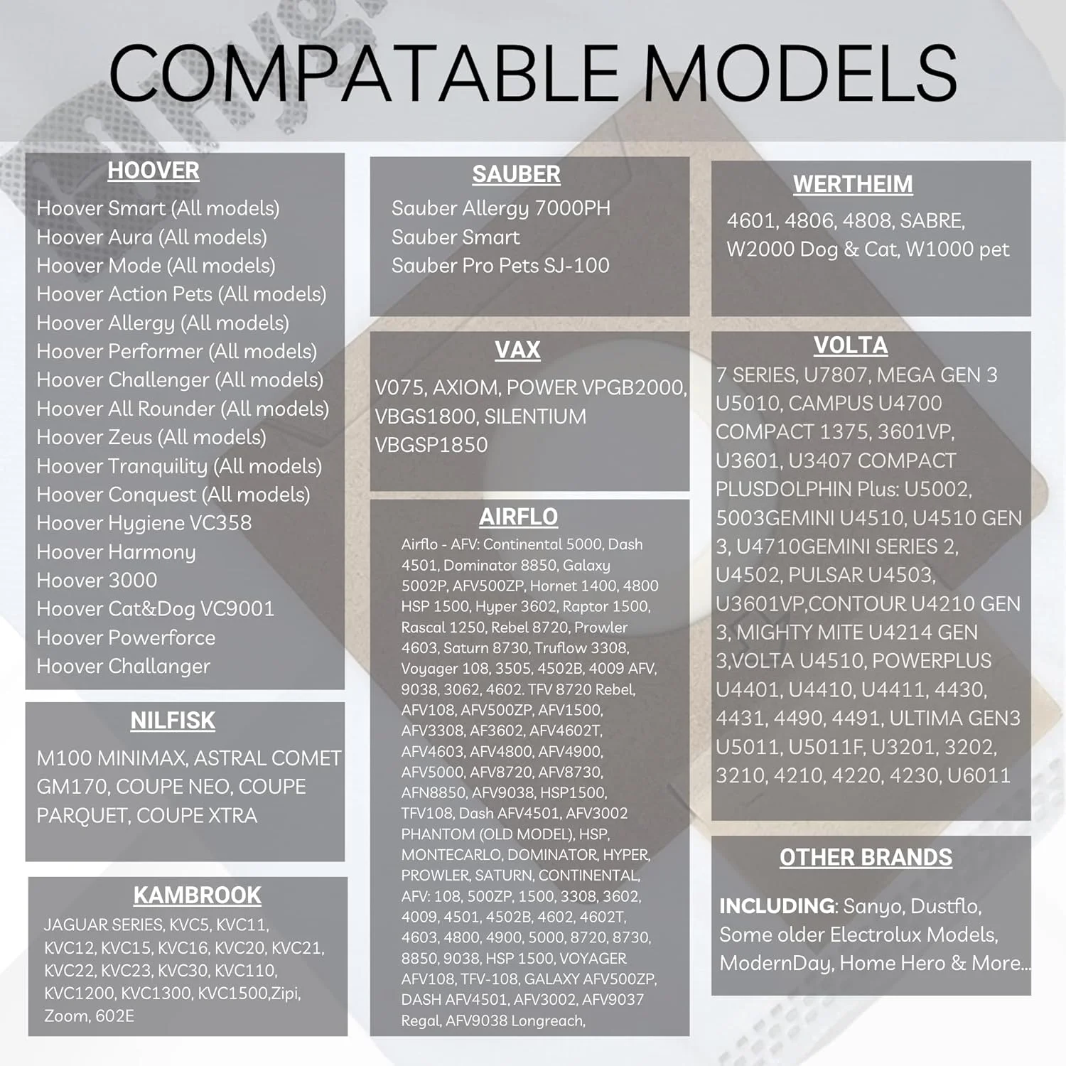 Synthetic (cloth material) vacuum cleaner bags