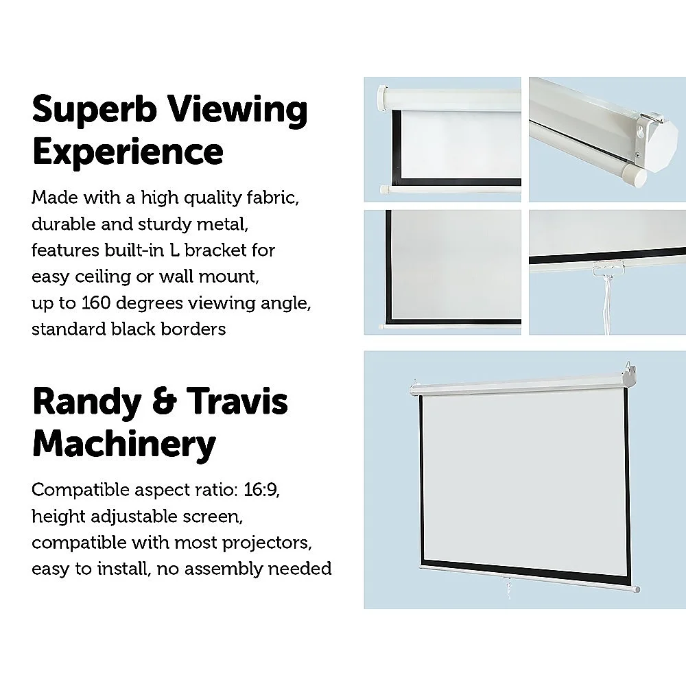 Whether it's for viewing old slides or films on the big screen, this projection screen from Randy Travis Machinery is perfect for popcorn time. Both ceiling- and wall-mountable for use inside and out, this screen will provide you with hours of fun with your family and friends without having to squint. So, instead of paying high ticket prices at the theatre, save money and watch your favourite movies right at home. Measuring 100 inches across the diagonal in a 16.9 widescreen format, it allows everyone to enjoy home movies and videos from anywhere in the room. With a 1.1 gain and a viewing angle up to 160 degrees, it prevents hot spots and provides the utmost in clarity and image reproduction.