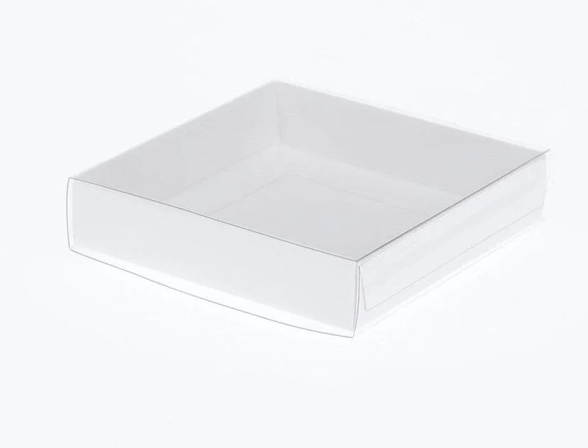 100 Pcs 10x10x4cm White Box with Clear Plastic Slide On Lid