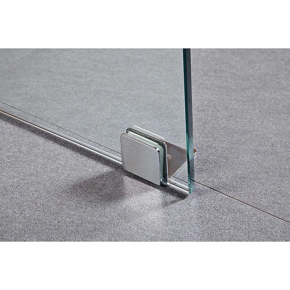 120x110cm Corner Frameless Shower Screen with Nickel Wall & Floor F-Brackets and SS Hinges, Square Knob Handle