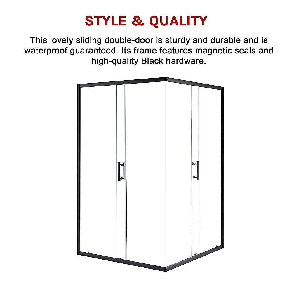 This lovely sliding double-door is sturdy and durable and is waterproof guaranteed. Its frame features magnetic seals and high-quality Black hardware. There are no worries about rust as the hardware that comes with the door is high-quality stainless steel. The accompanying side panel features a universal fitting that allows for right or left-hand installation with an 18mm out of true wall adjustment.