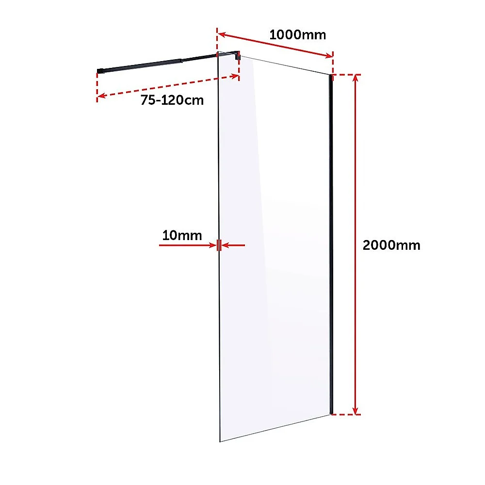 This single-panel screen is crafted from a 10mm-thick toughened safety glass. In addition to its crystal clarity, this glass is specifically designed to ensure absolute safety in the bathroom, meeting all applicable Australian Standards. A wall bracket (U-Channel) and retractable aluminium stabilizing pole are included for a straightforward, hassle-free installation. This panel measures 1000mm wide by 2000mm high.
