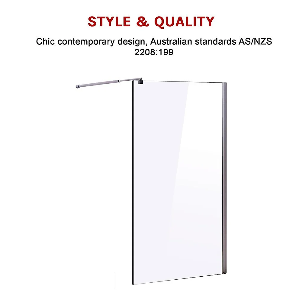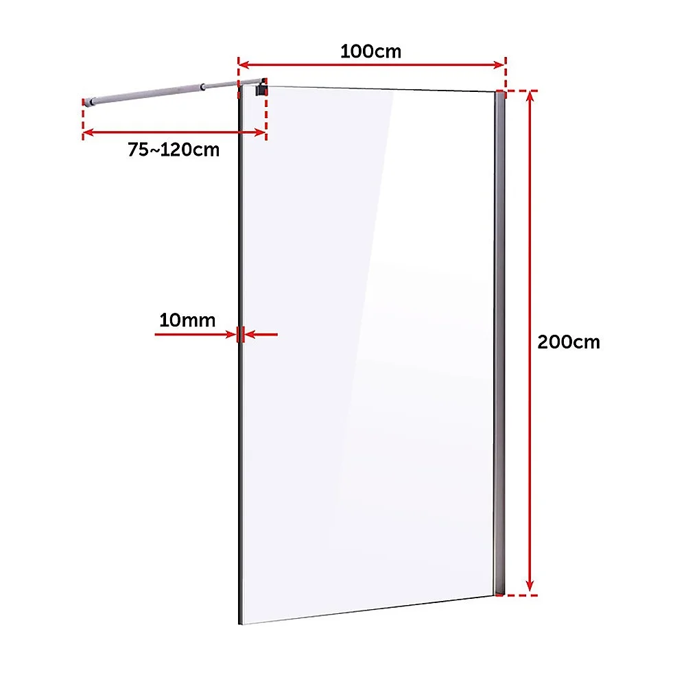 This single-panel screen is crafted from a 10mm-thick toughened safety glass. In addition to its crystal clarity, this glass is specifically designed to ensure absolute safety in the bathroom, meeting all applicable Australian Standards. A wall bracket (U-Channel) and retractable aluminium stabilizing pole are included for a straightforward, hassle-free installation. This panel measures 1000mm wide by 2000mm high.