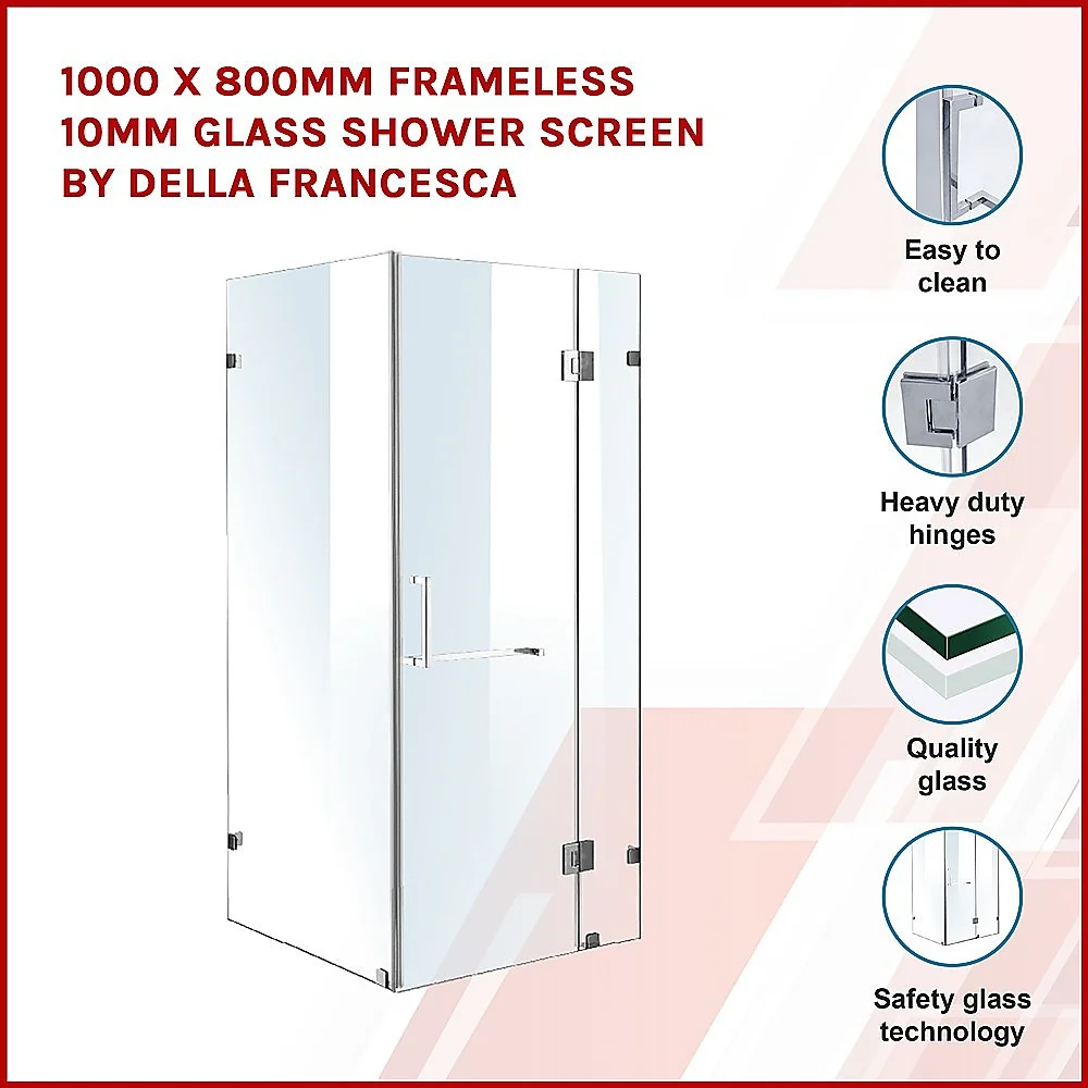 Della Francesca Frameless Shower Screens - Great Style for an affordable Price 1000 x 800 x 2000 Square Shape Finish
