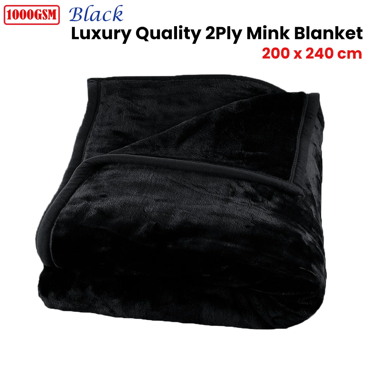 Wrap yourself in comfort and style with this 1000GSM Luxury Quality 2 Ply Mink Blanket Black 200 x 240 cm. The blanket net weight approx. 5.1 kg. It features timeless solid design that will add a touch of elegance to your bedroom decor making bedtime feel like a retreat to a cosy haven. It is made from quality and soft touch polyester fabric for a comfortable and rejuvenating slumber every night.