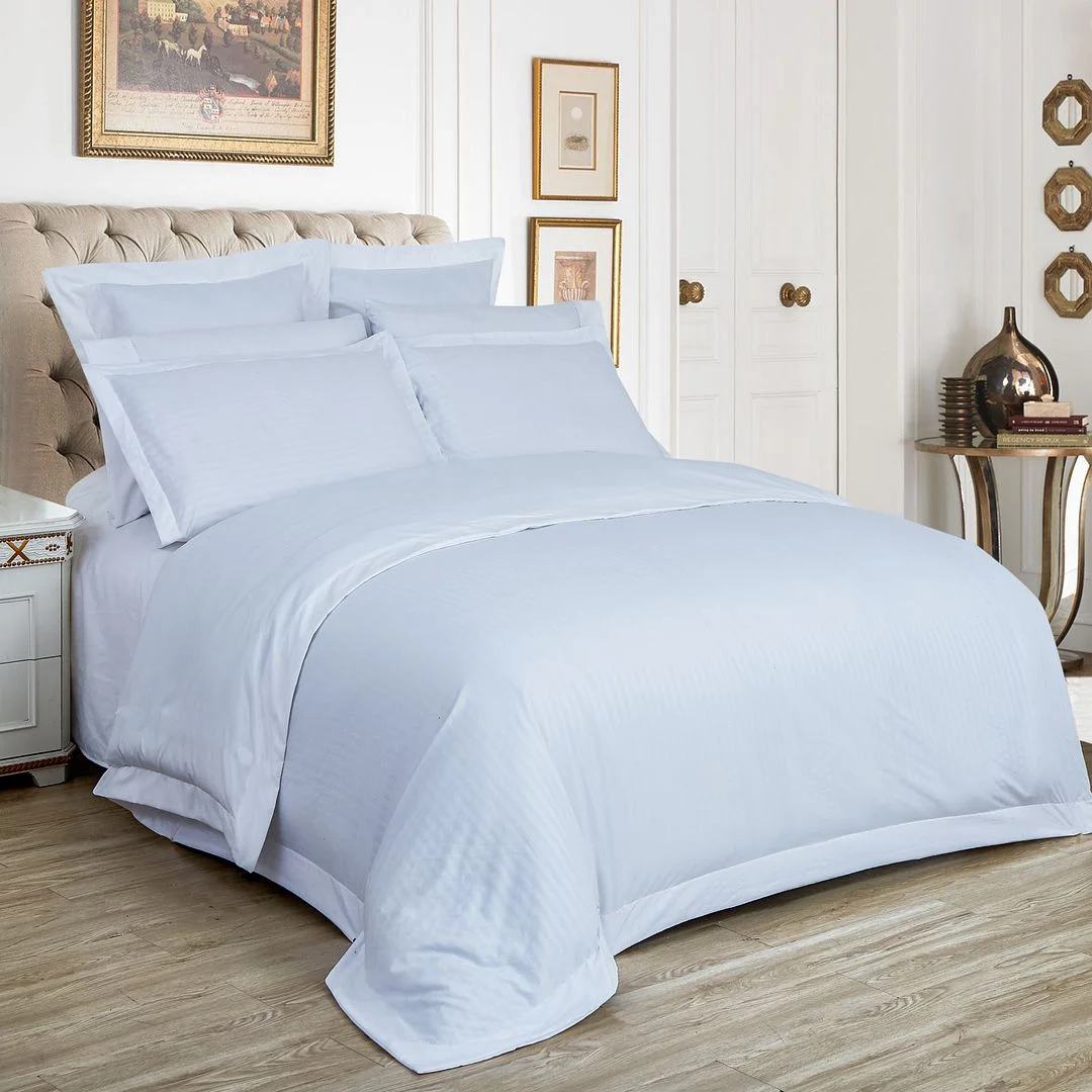 1000TC Ultra Soft Striped King Size White Duvet Quilt Cover Set