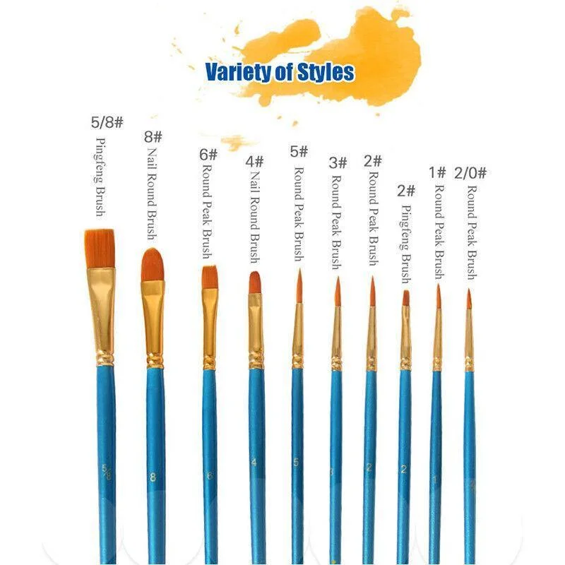 This painting brush set includes 10 brushes with different nib sizes, which are suitable for drawing different lines.