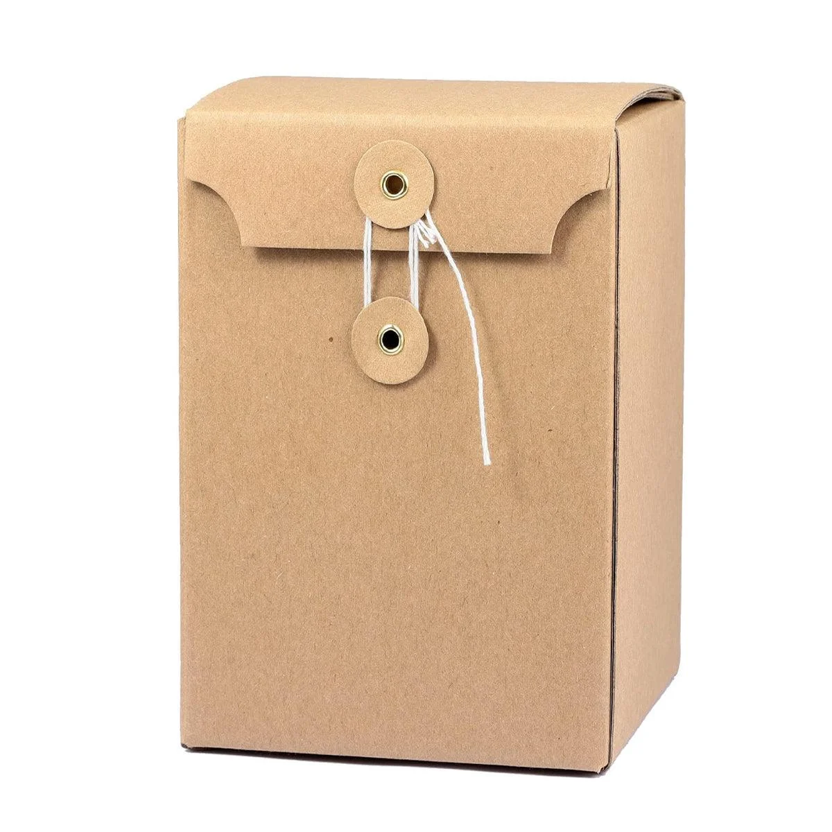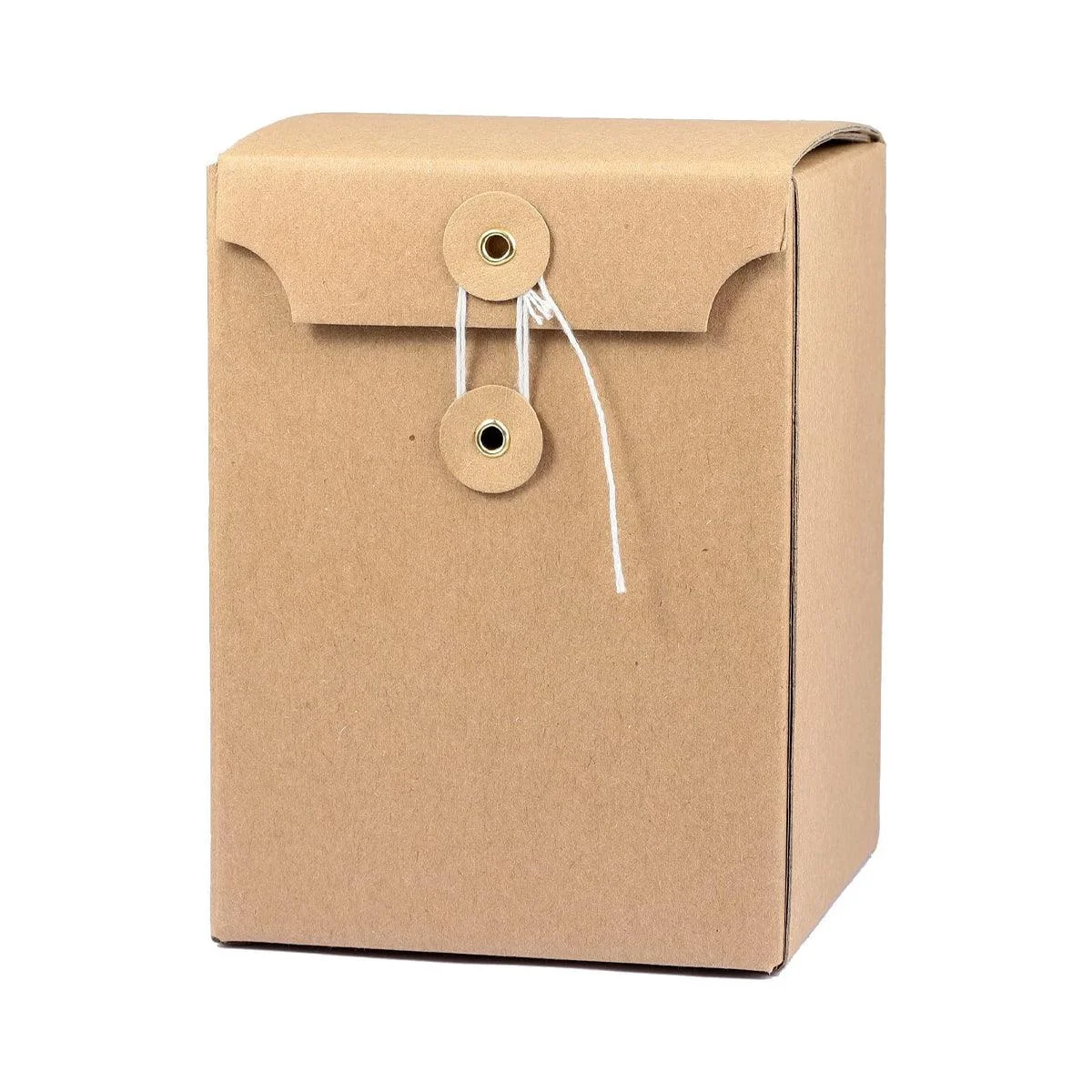 These kraft paper gift boxes offer a stylish and functional packaging solution for various occasions. Made from high-quality corrugated paper, these boxes provide durability and a professional look. They feature a secure button and string closure, making them easy to open and close while ensuring the contents remain safe. The foldable design allows for convenient storage and easy assembly. Perfect for packaging small gifts, baked goods, handmade items, and party favors, these versatile boxes add a rustic and elegant touch to any presentation.