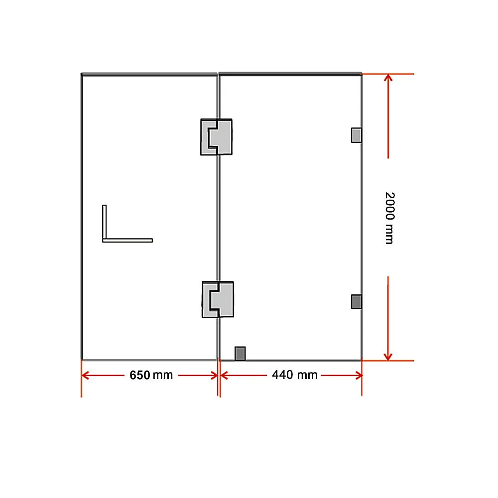 110x90cm Corner Frameless Shower Screen with Gunmetal F-Brackets and SS Hinges, Square Double Pull Handle