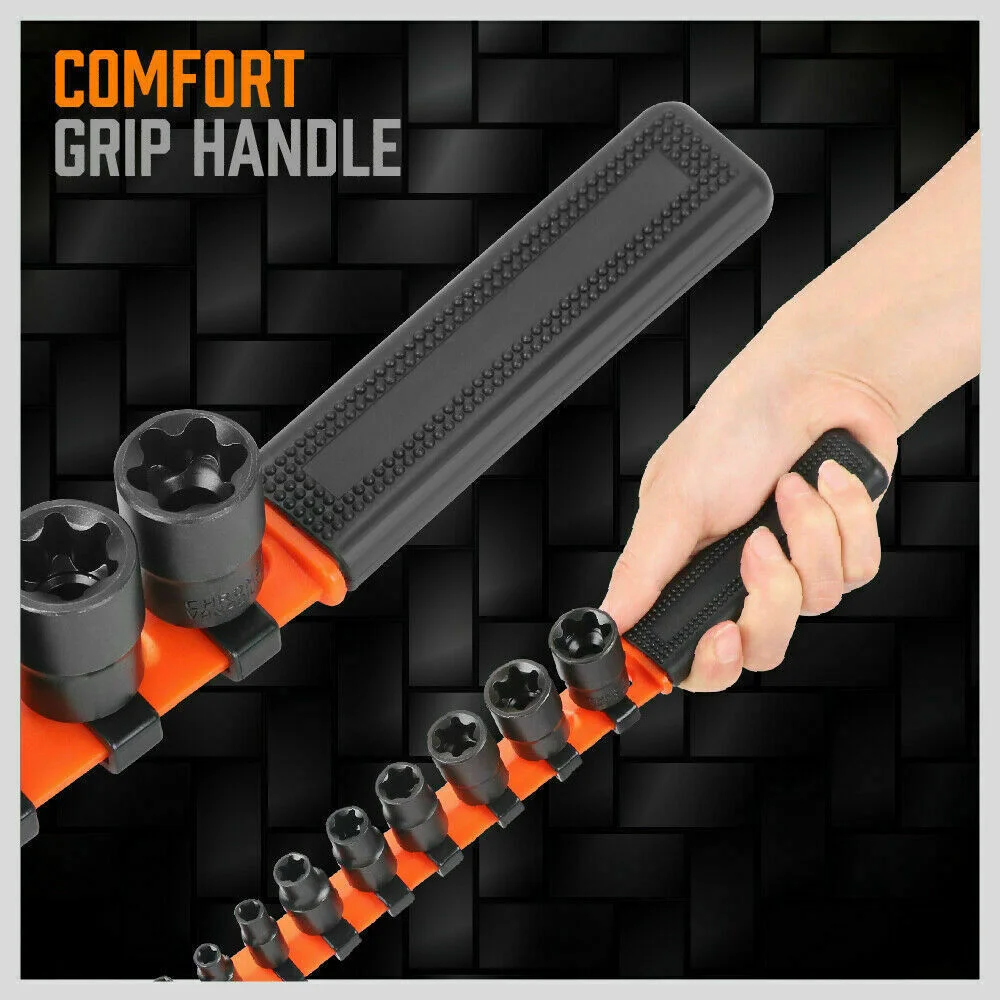 11Pc E-Torx Socket Set Female External Star Type E4-E20 3/8" 1/4" Dr. With Rail