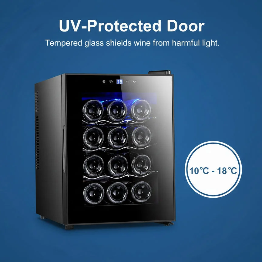 8 Bottle Thermoelectric Wine Fridge, 65W, UV Protected Glass Door, Soft LED Illumination