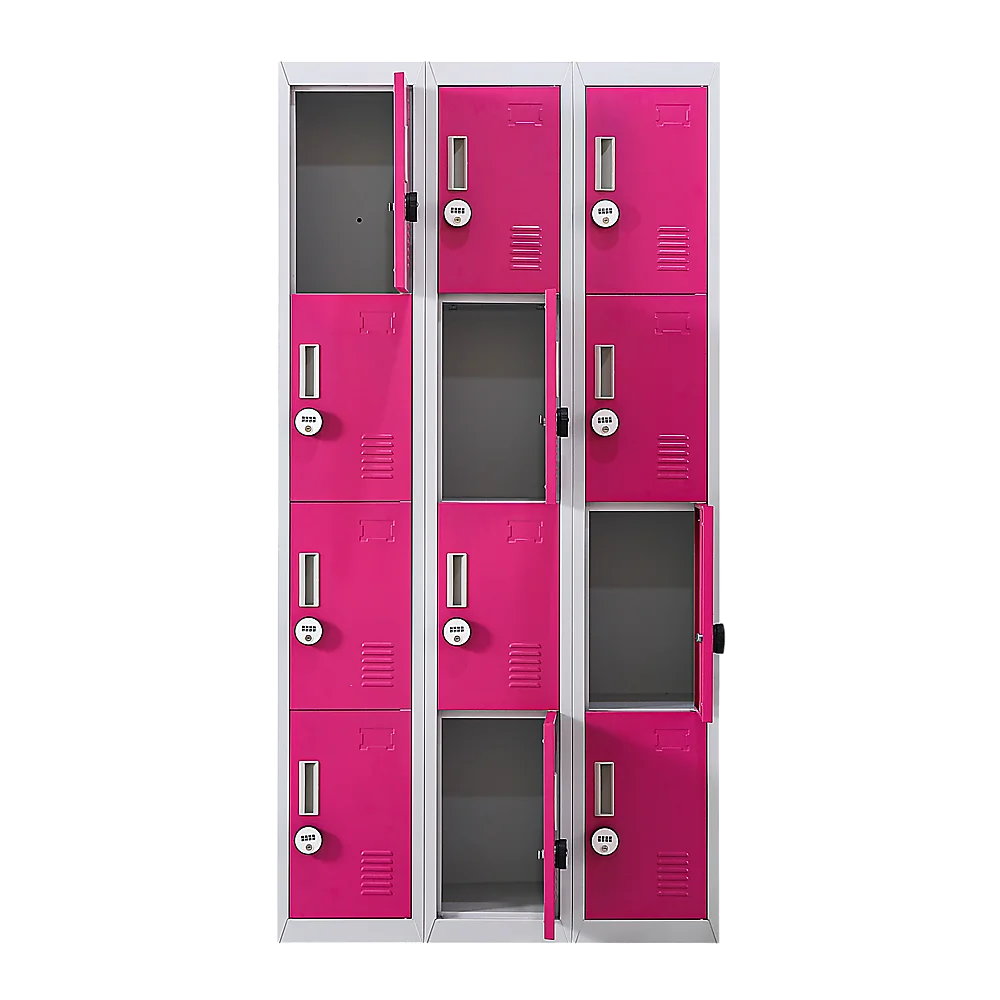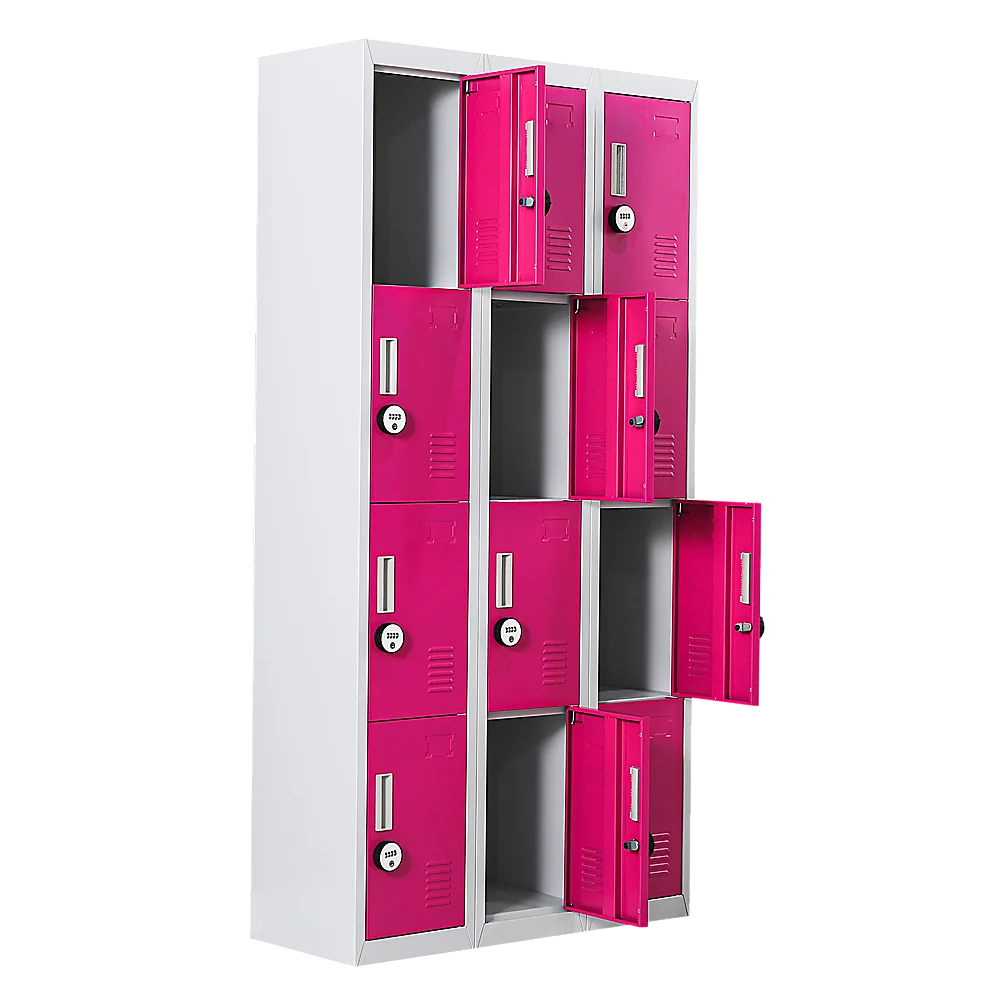 The unit has 12 individual locker compartments stacked in a 3 x 4 grid. Each locker provides ample space for personal items and can hold up to 30 kg. Built-in ventilations slits keep the stored items from smelling musty. Users may also customise their locker with a name tag or label in the designated slot provided. This comes comes with 4-digit combination lock to ensure safety of your belongings.
