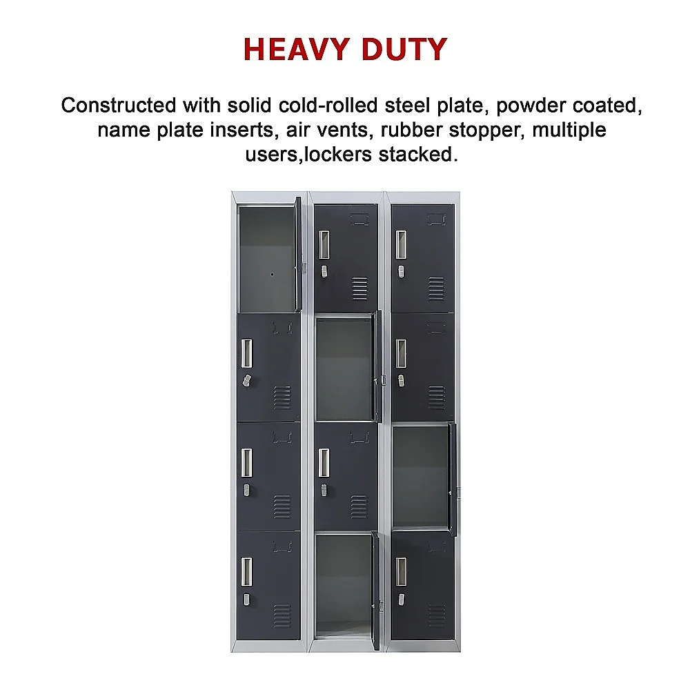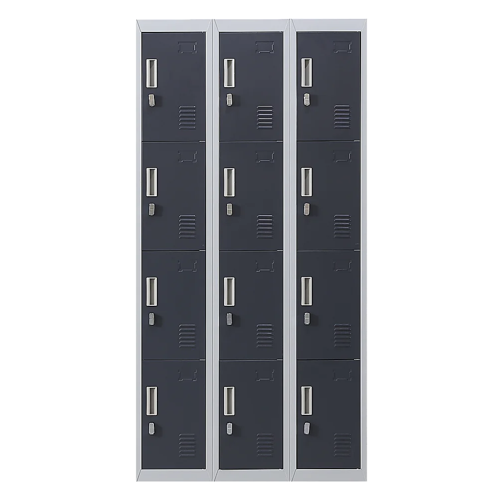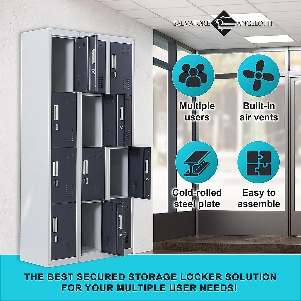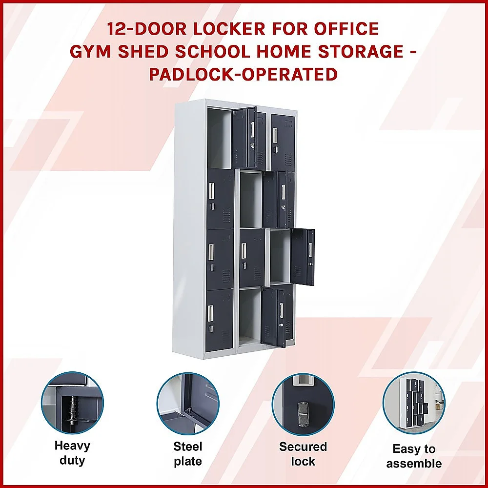 The unit has 12 individual locker compartments stacked in a 3 x 4 grid. Each locker provides ample space for personal items and can hold up to 30 kg. Built-in ventilations slits keep the stored items from smelling musty. Users may also customise their locker with a name tag or label in the designated slot provided. This comes comes with padlock-operated lock to ensure safety of your belongings.