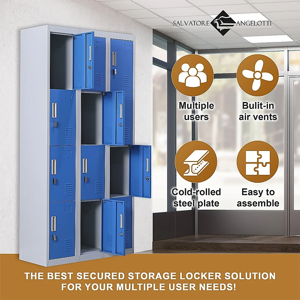 The unit has 12 individual locker compartments stacked in a 3 x 4 grid. Each locker provides ample space for personal items and can hold up to 30 kg. Built-in ventilations slits keep the stored items from smelling musty. Users may also customise their locker with a name tag or label in the designated slot provided. This comes comes with padlock-operated lock to ensure safety of your belongings.