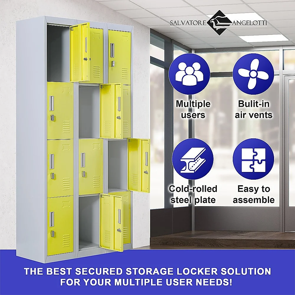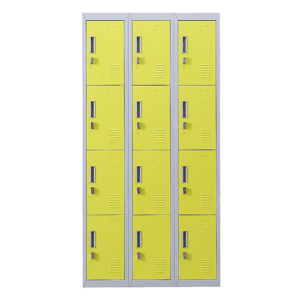 The unit has 12 individual locker compartments stacked in a 3 x 4 grid. Each locker provides ample space for personal items and can hold up to 30 kg. Built-in ventilations slits keep the stored items from smelling musty. Users may also customise their locker with a name tag or label in the designated slot provided. This comes comes with padlock-operated lock to ensure safety of your belongings.