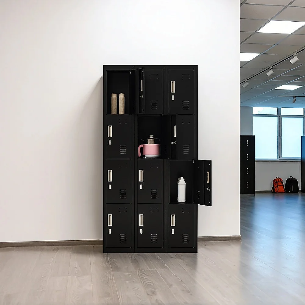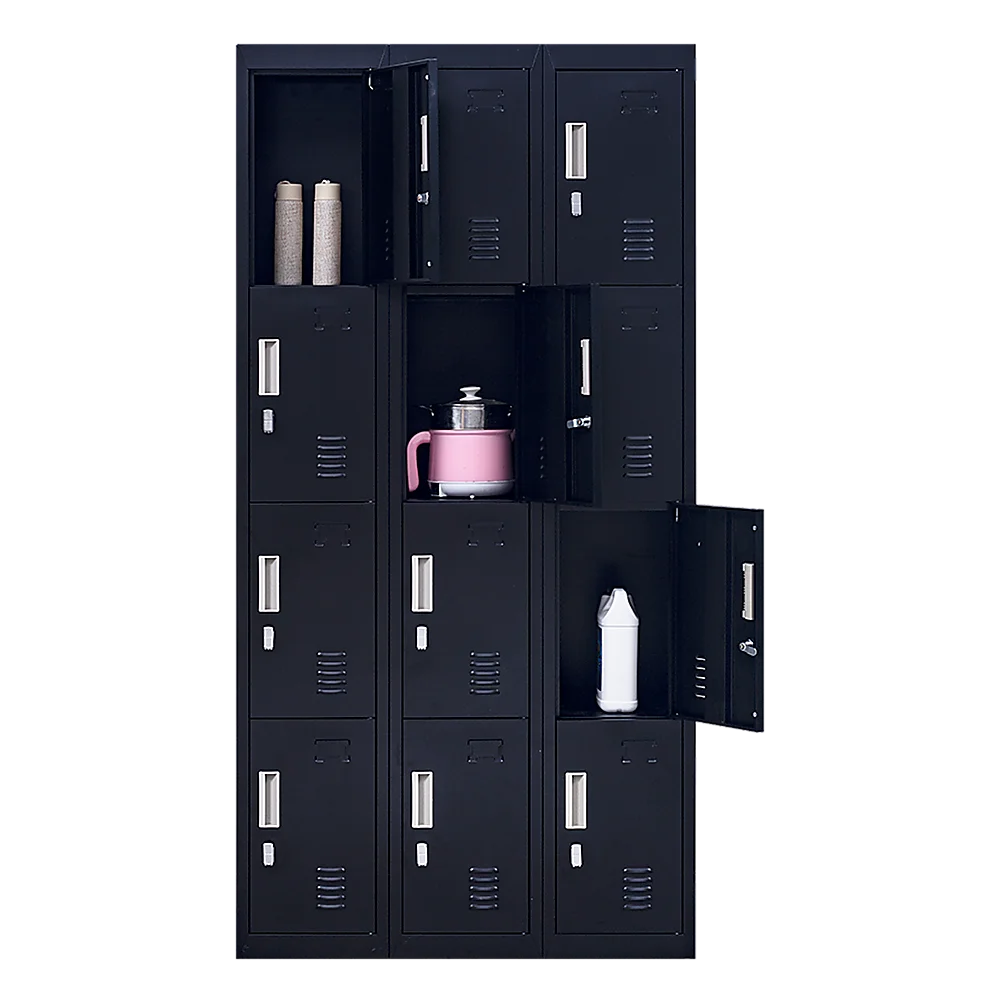 The unit has 12 individual locker compartments stacked in a 3 x 4 grid. Each locker provides ample space for personal items and can hold up to 30 kg. Built-in ventilations slits keep the stored items from smelling musty. Users may also customise their locker with a name tag or label in the designated slot provided. This comes comes with padlock-operated lock to ensure safety of your belongings.