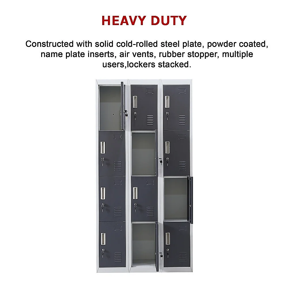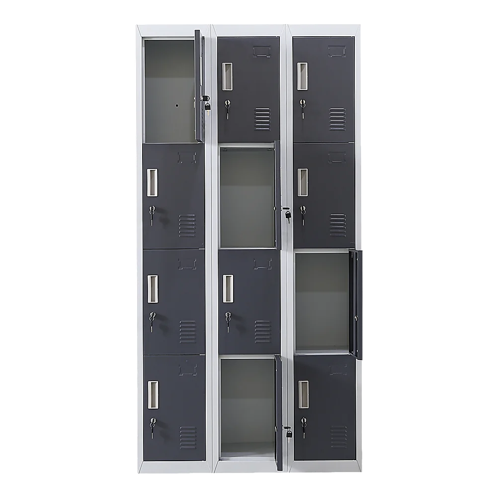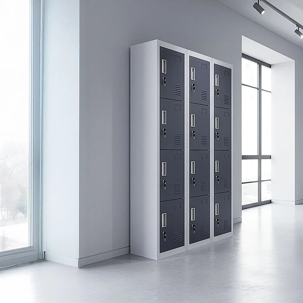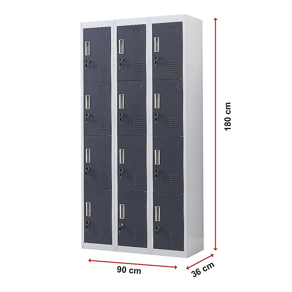 The unit has 12 individual locker compartments stacked in a 3 x 4 grid. Each locker provides ample space for personal items and can hold up to 30 kg. Built-in ventilations slits keep the stored items from smelling musty. Users may also customise their locker with a name tag or label in the designated slot provided. This comes comes with standard locks (with 2 keys each) to ensure safety of your belongings.