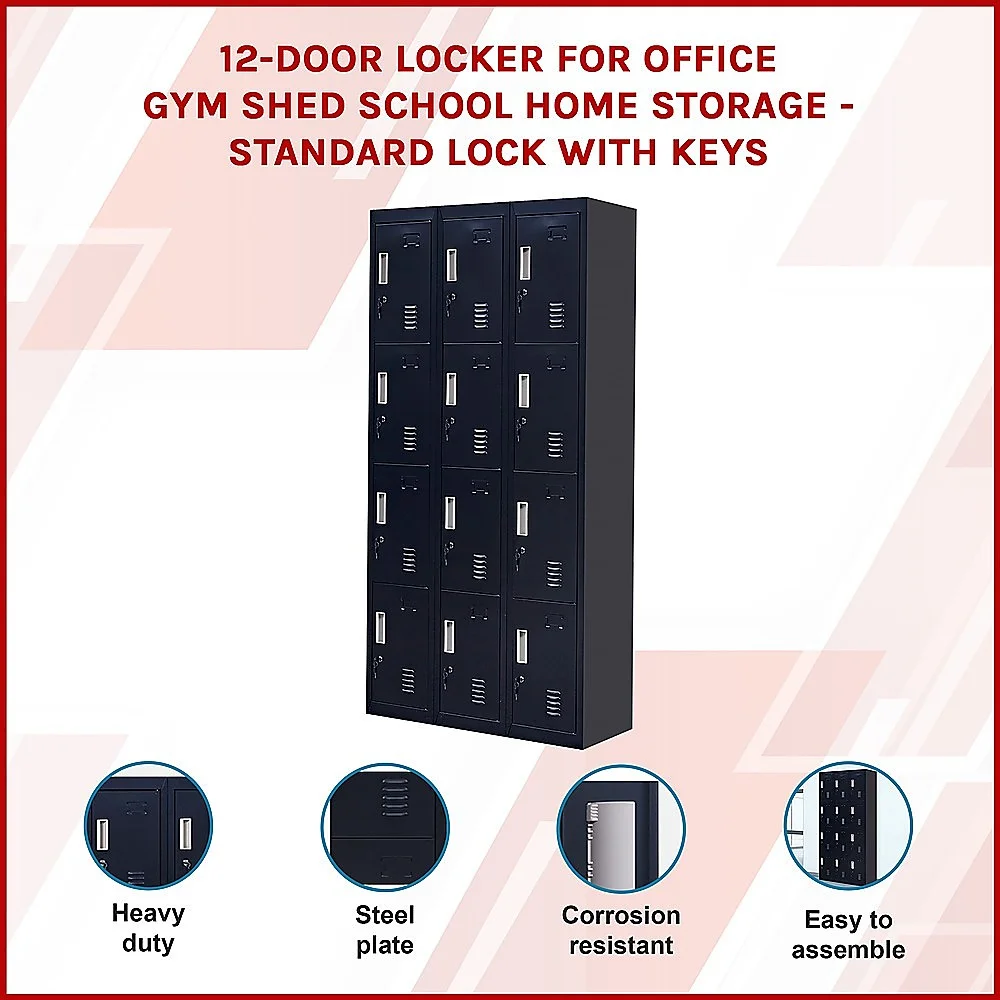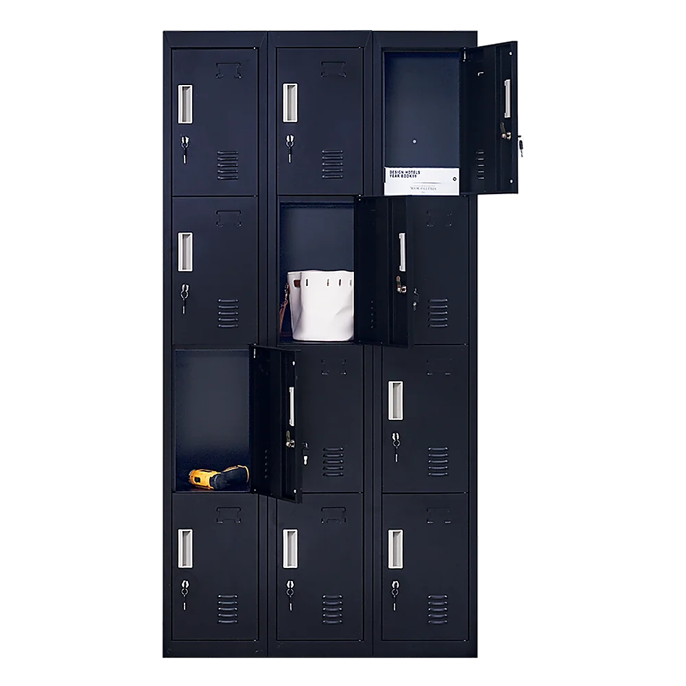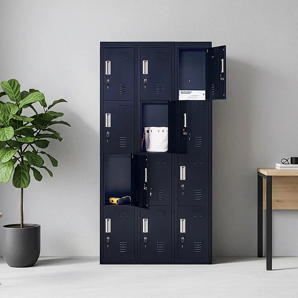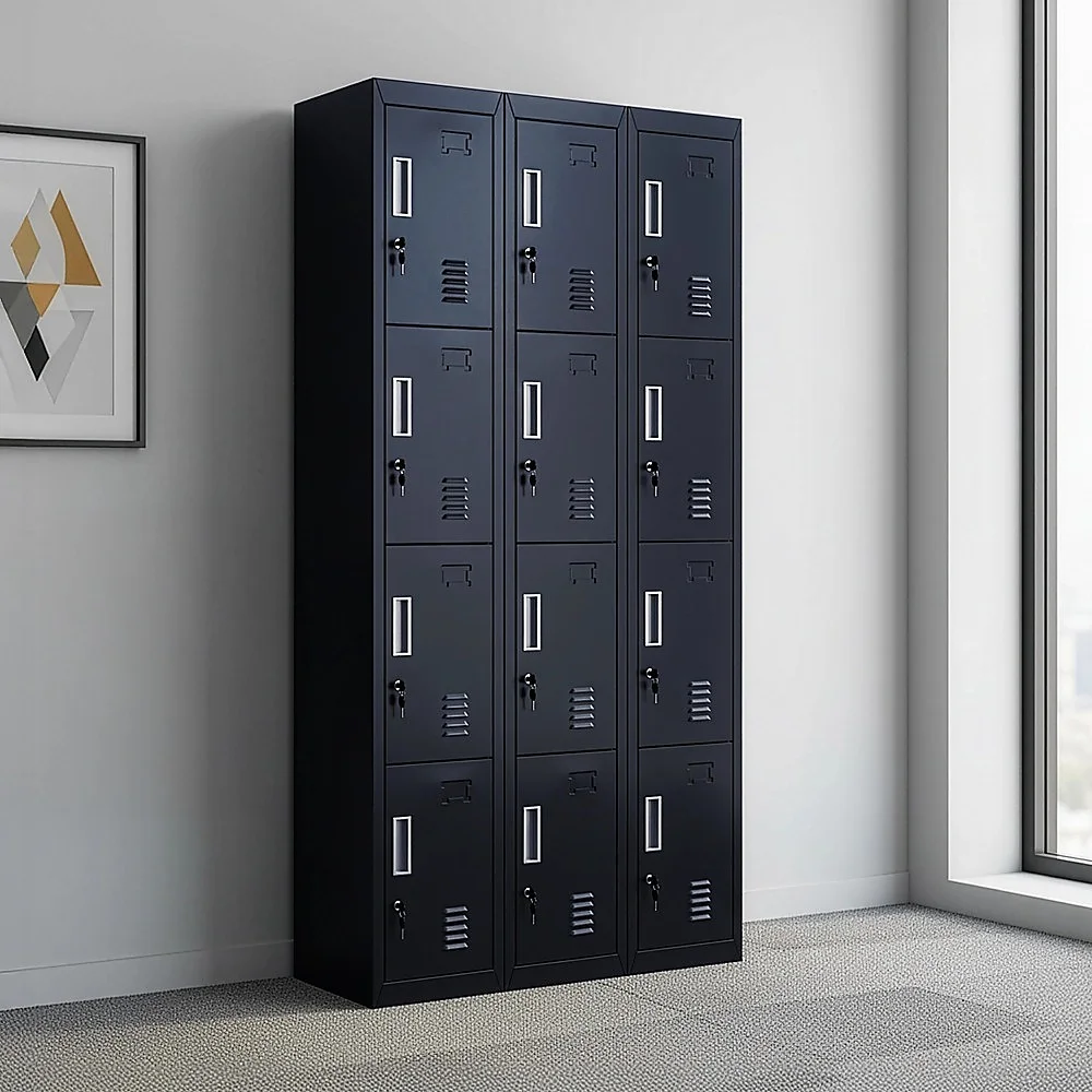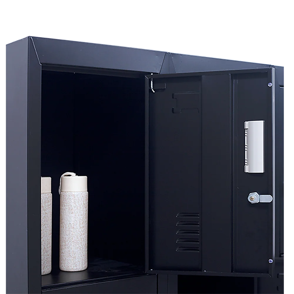 The unit has 12 individual locker compartments stacked in a 3 x 4 grid. Each locker provides ample space for personal items and can hold up to 30 kg. Built-in ventilations slits keep the stored items from smelling musty. Users may also customise their locker with a name tag or label in the designated slot provided. This comes comes with standard locks (with 2 keys each) to ensure safety of your belongings.
