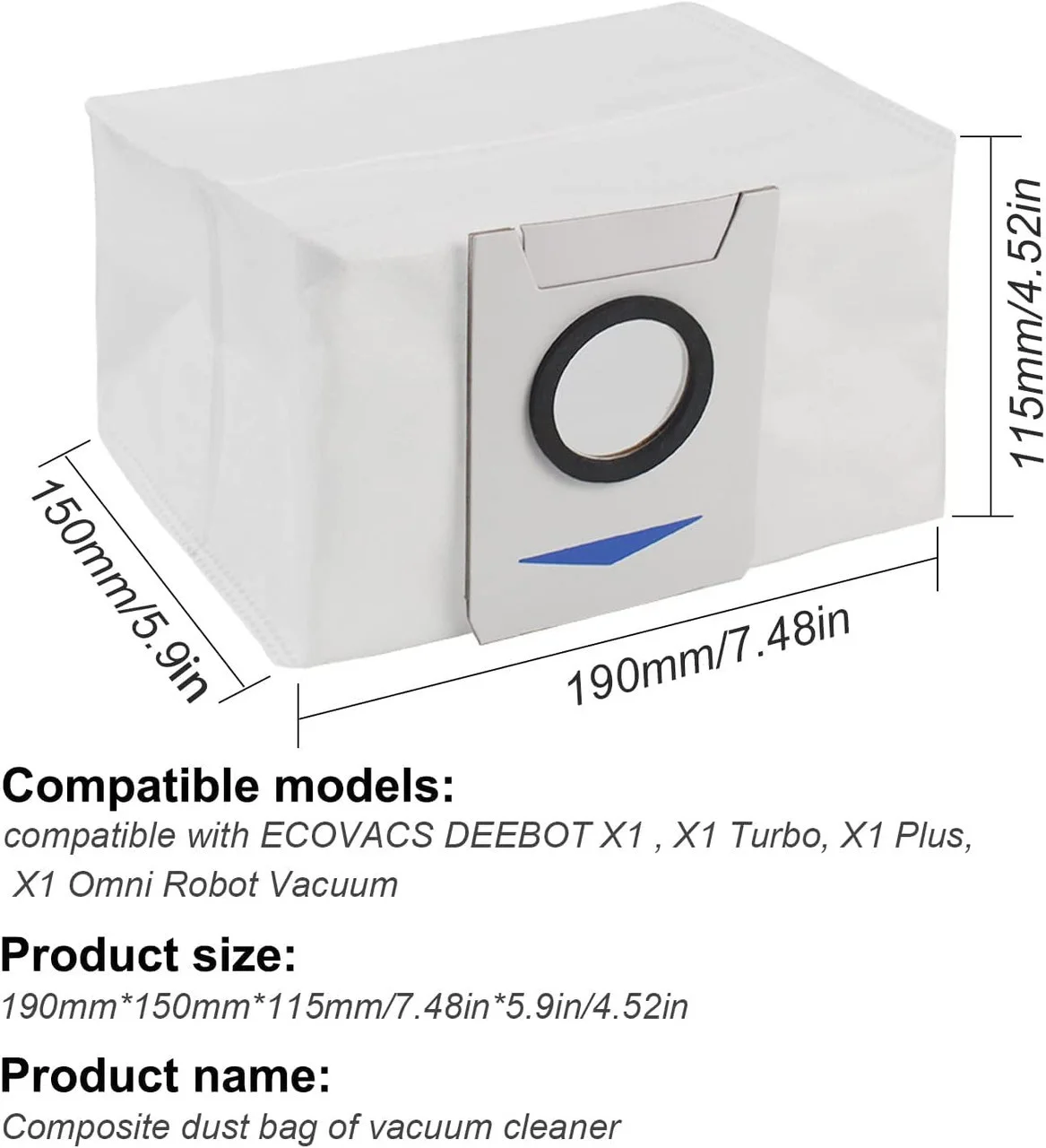 These dust bags are suitable for DEEBOT X1 series robot vacuum cleaners and are compatible with ECOVACS DEEBOT X1, X1 Turbo, X1 Plus, X1 Omni, T10 Robot Vacuums