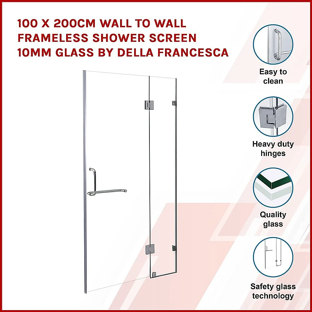 Frameless shower screens give your bathroom a modern, luxurious, stylish and spacious look with no ugly aluminium railings or struts. Bring new comfort, style and quality to your bathroom with this elegant and economic Wall-to-Wall Frameless Shower Screen from Della Francesca!