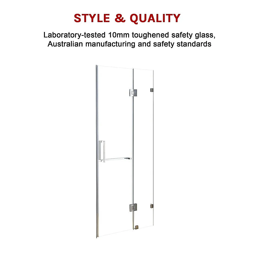 100x90cm Black Corner Frameless Shower Screen with Wall Channel Brackets, Stainless Steel Hinges & Square Double Pull Handle