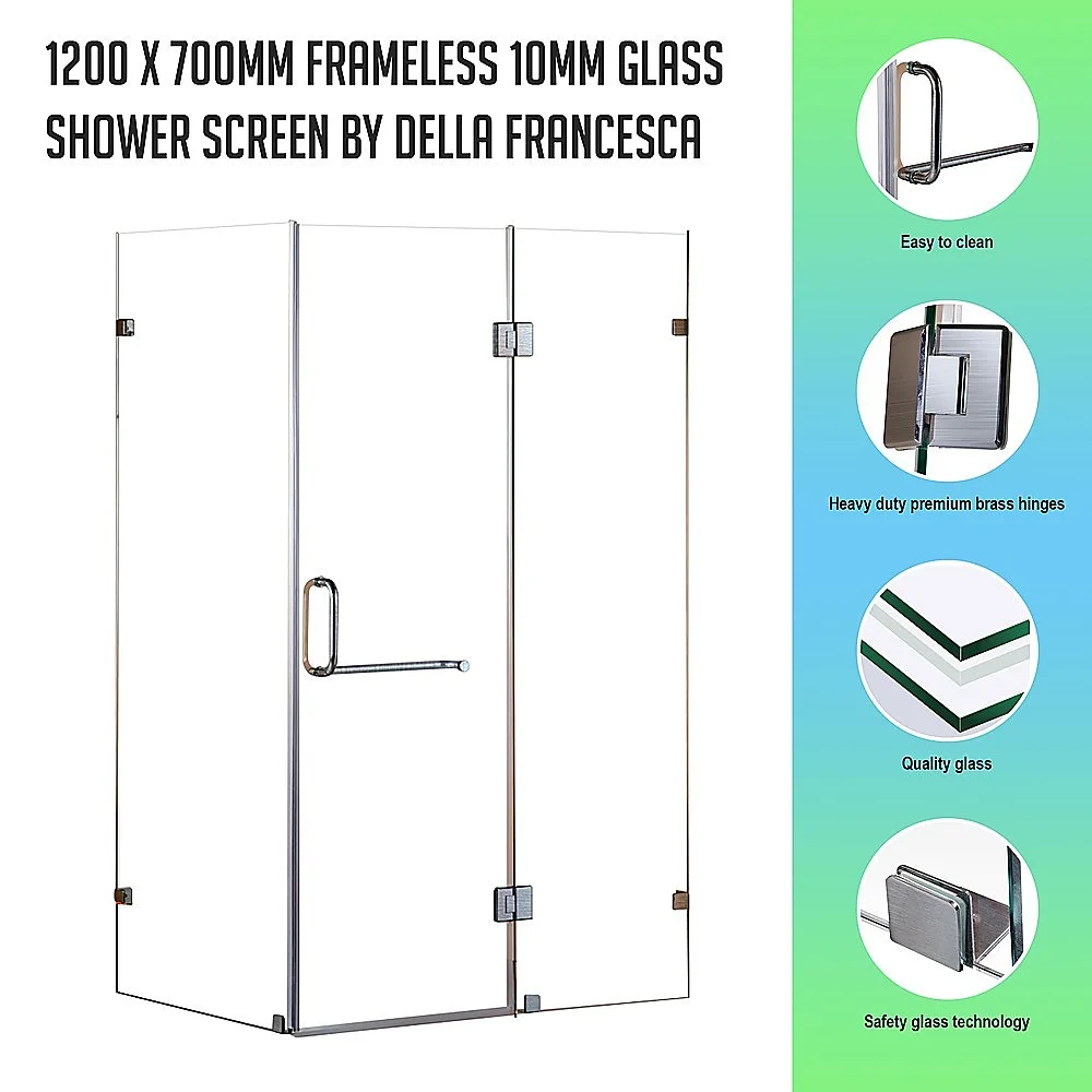 Della Francesca Frameless Shower Screens - Great Style for an affordable Price 1200 x 700 x 2000 Square Shape Finish