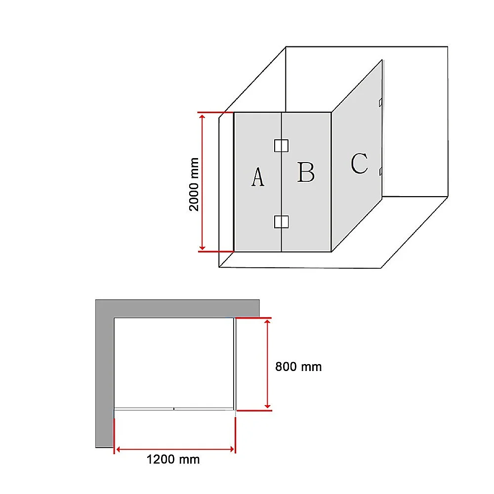 Della Francesca Frameless Shower Screens - Great Style for an affordable Price 1200 x 800 x 2000 Square Shape Finish