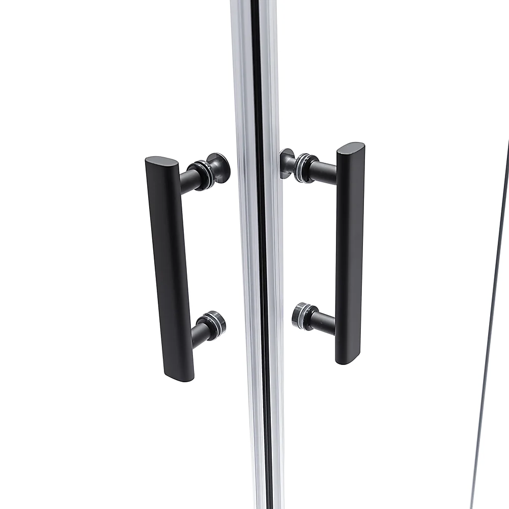 This lovely sliding double-door is sturdy and durable and is waterproof guaranteed. Its frame features magnetic seals and high-quality Black hardware. There are no worries about rust as the hardware that comes with the door is high-quality stainless steel. The accompanying side panel features a universal fitting that allows for right or left-hand installation with an 18mm out of true wall adjustment.