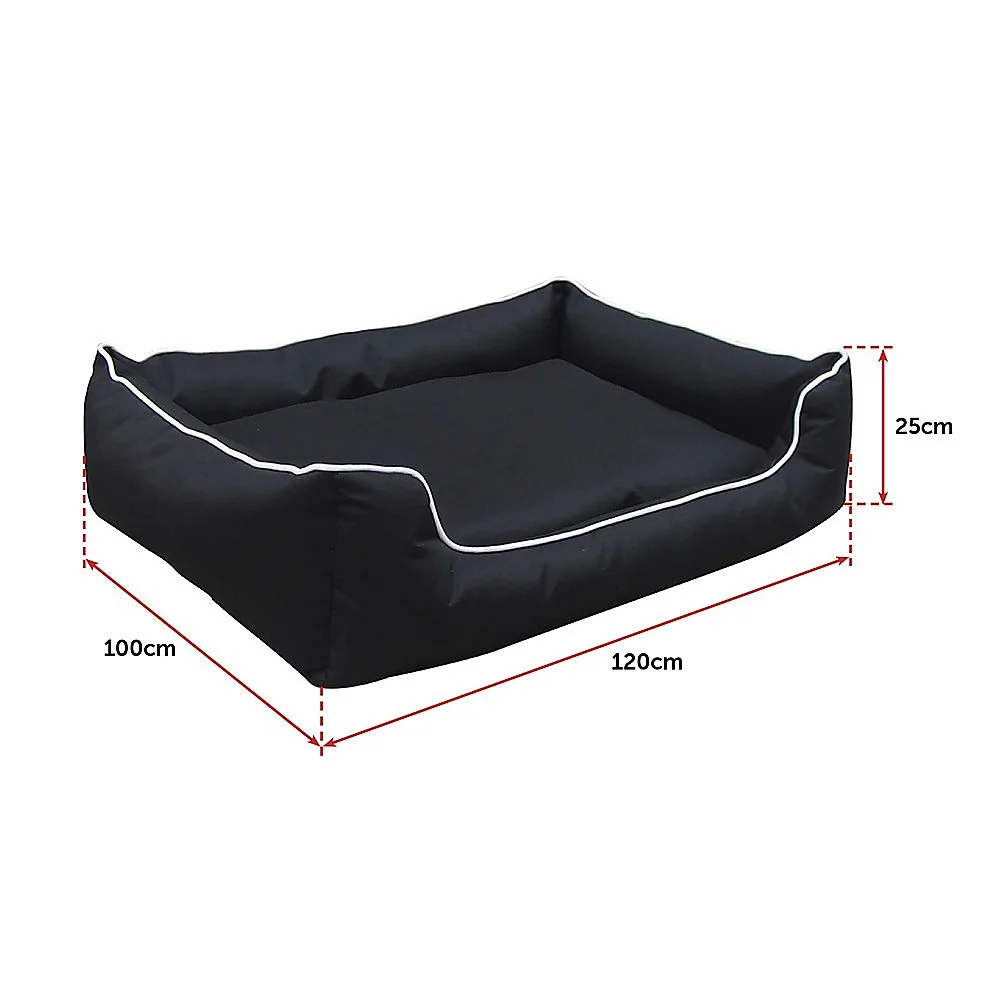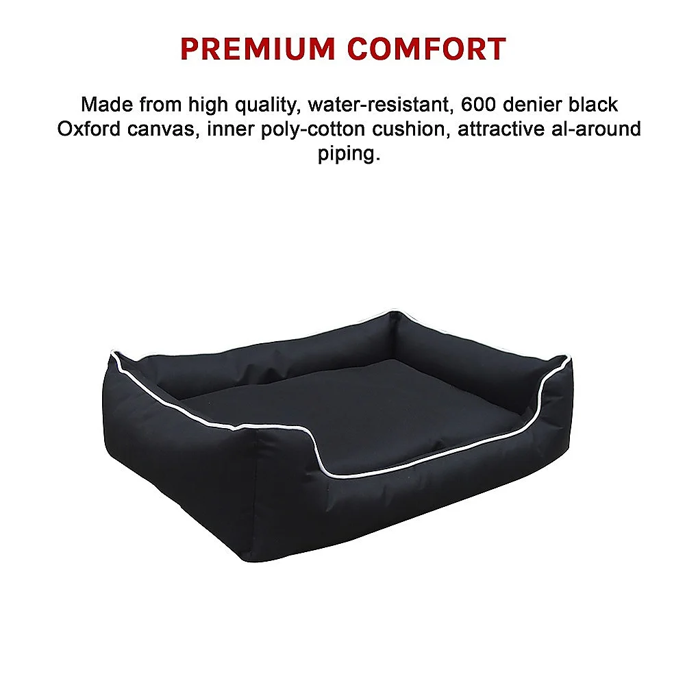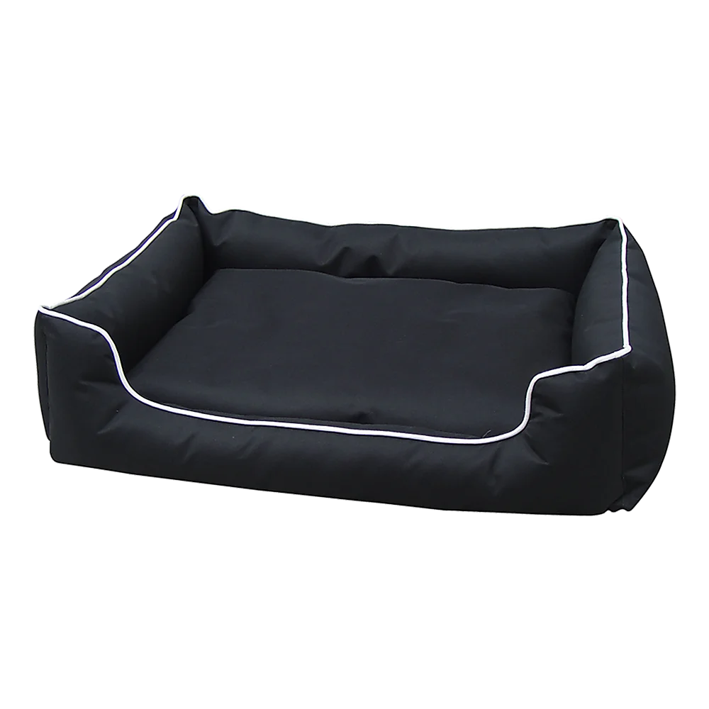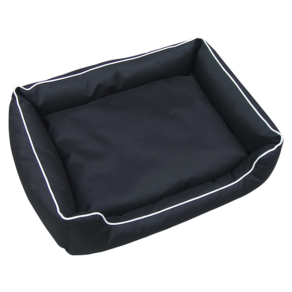 This bed for medium-sized dogs measures L120cm x 100cm x H25cm. It's made from an extra-tough and waterproof 600 denier Oxford canvas, which is durable enough for outdoor use yet comfy enough to provide plenty of pleasant dreams. The fabric comes in a black canvas with white piping, a handsome combination for most any existing colour scheme.