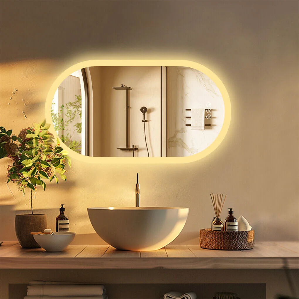- Enhanced Visibility with LED Lighting: Experience unparalleled clarity and precision with our oval-shaped LED bathroom mirror, featuring ultra-bright lighting that eliminates shadows for flawless makeup application and grooming.
