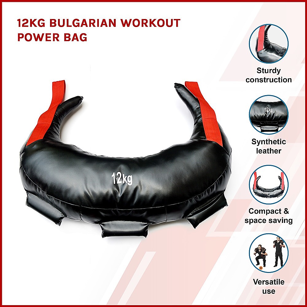 The Bulgarian bag offers everything a Kettlebell, dumbbell or barbell can offer and much more. This live' weight can be punished in explosive, dynamic ways that are impossible with solid iron weights. Invented by Bulgarian Ivan Ivanov, a former Greco-Roman Olympic athlete and coach, the tool was first used with wrestlers. The Bulgarian bag is perfect for pushing, twisting, swinging, rotating, squatting, lunging and throwing. The intensity of working out with the Bulgarian bag goes beyond strength training. The Bulgarian bag develops speed, power and flexibility. Features: Synthetic leather outer with a flock fill inner Portable and can be used virtually anywhere Requires no additional tools, attachments, or set up Can be used as a free weight in various, simple and dynamic movements Weight: 12KG Note: Stap Colours and design may vary Note: COM (change of mind) Return Policy: The product must be unopened and in brand new condition, with the return to be organised by the customer. Once received and verified to be in the condition specified, refund is only of the item value minus 15% restocking fee (not including initial shipping). An additional return charge, which is same cost as that of initial shipping, will be deducted from the refund on returns due to delivery failure caused by customer error. For the health and safety of our staff and other customers, we are unable to accept returns of personal use items.