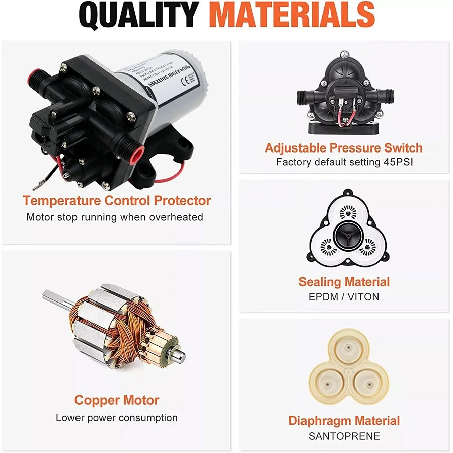 Quiet and Dependable: This water pump is designed to be super quiet, providing you with a peaceful water system experience. Its thermal protection and the ability to run dry without damage make it an ideal choice for your needs.