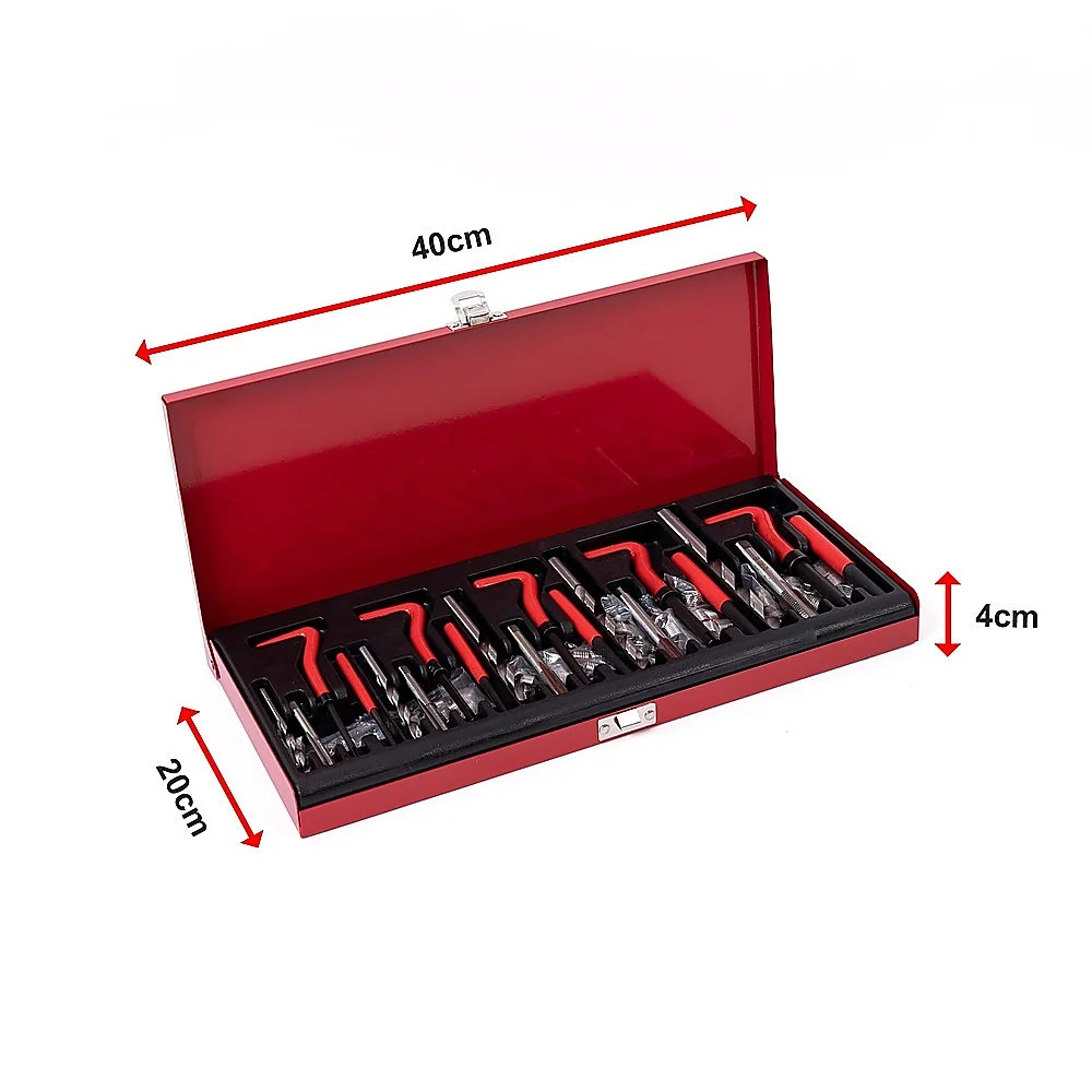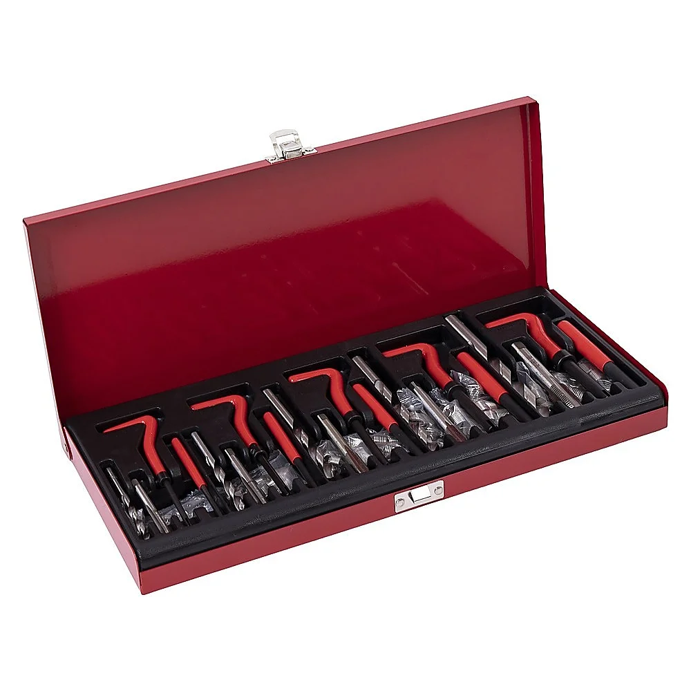 Perfect for engine repair, automotive work, or machinery maintenance, this kit includes everything you needthread taps, twist drills, wire inserts, insert installation tools, and lug breaking toolsall neatly organized in a durable steel carrying case.