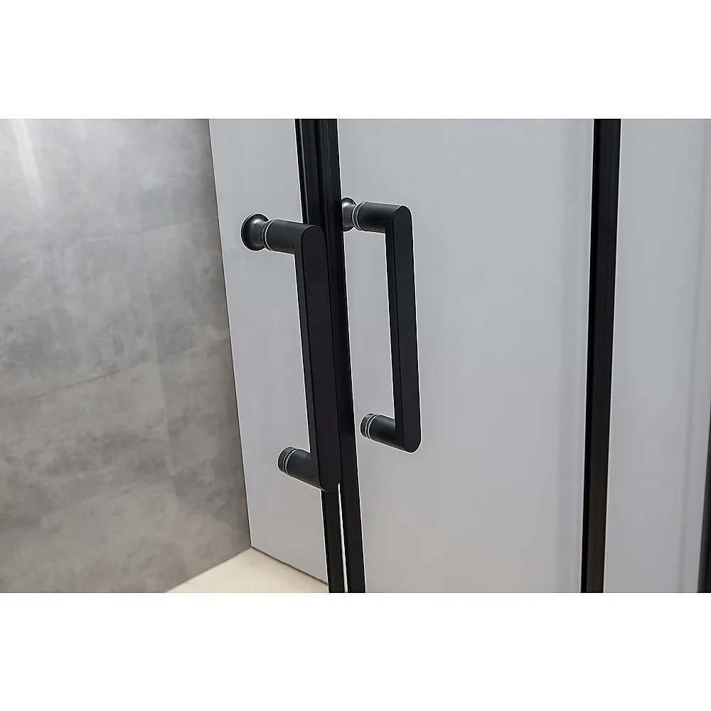 The sombre, neutral black colouring complements the bright, easy-clean glass for a stylish and streamlined aesthetic for your shower. Safety glass is the order of the day, so you can feel confident the door is built for the long haul and resistant to damage. The transparent seals ensure reliable waterproofing and the framing has sharp lines and flat surfaces, yielding an unmistakable essence of style. The glass is nano-coated for easy cleaning and the robust plastic magnet will keep the doors securely closed whenever you use the shower.