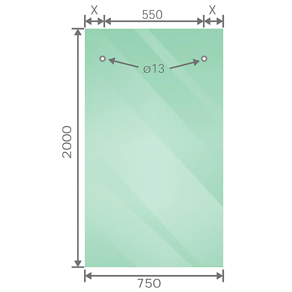 Tailored for a frameless shower screen featuring a sliding door, glass screen for the side panel showcases 10mm clear toughened glass with 2mm radius corners and polished edges. All measurements are in millimeters, and the panels come pre-drilled to seamlessly fit various styles of shower hardware.