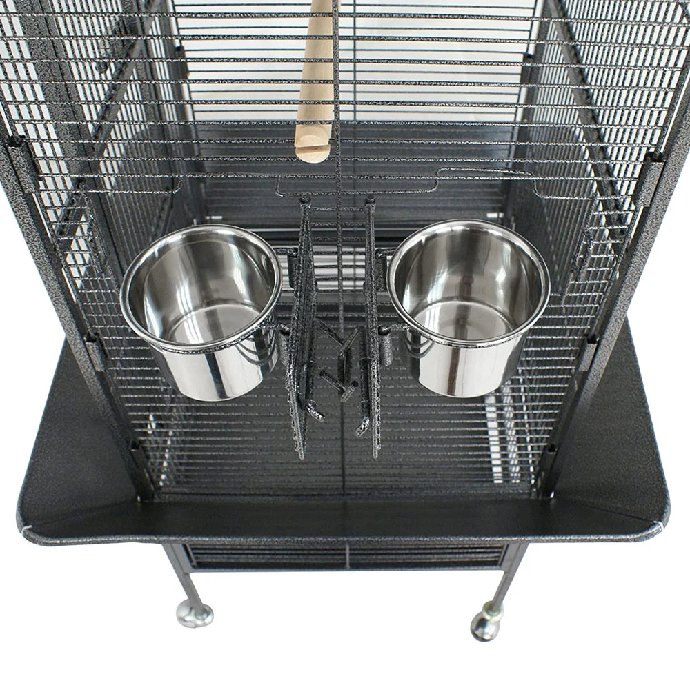 Sturdy enough to handle your birds bites and harsh weather conditions! This Bird Cage is made of wrought iron that makes it a sturdy and durable bird cage. Powder coated with non-toxic and lead free paint.