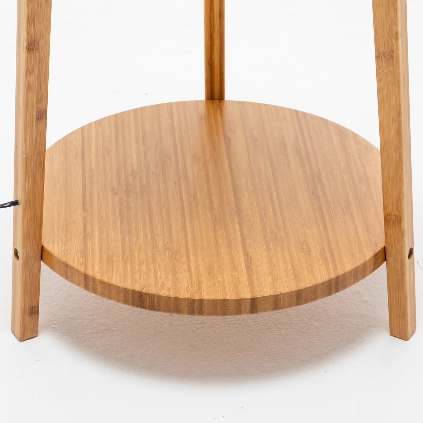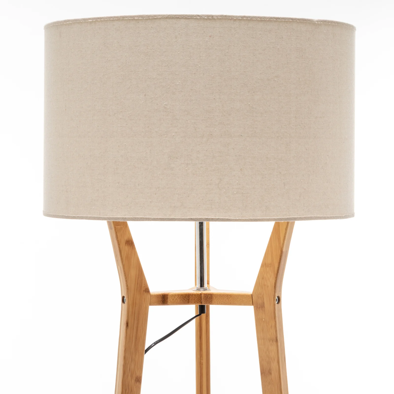 Elevate the ambiance of your living space with the 168cm Large Bamboo Wooden Tripod Floor Lamp. This modern floor lamp combines functionality with stylish design, making it a perfect addition to any contemporary home. The lamp features a beautifully crafted bamboo base and a sleek linen shade, providing a natural yet sophisticated look. With built-in shelves, this lamp not only illuminates your room but also offers convenient storage for your favorite decor pieces or books.