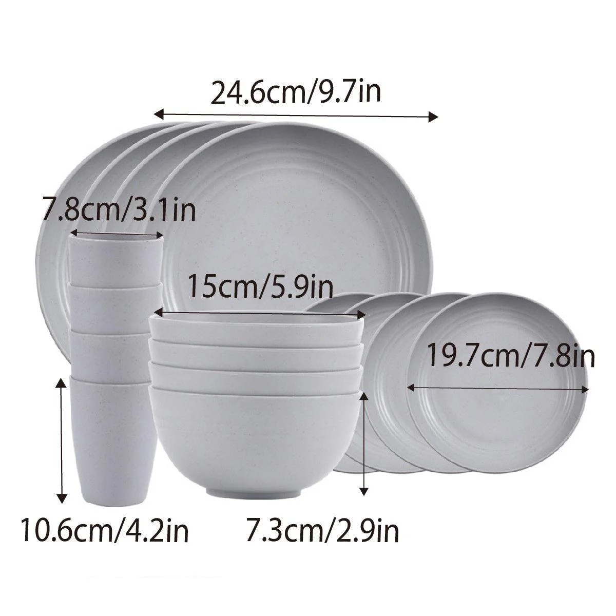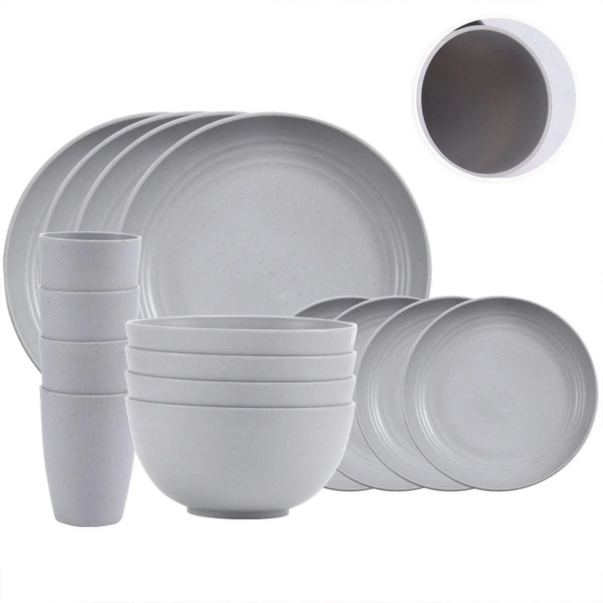 16 x Wheat Straw Tableware Set (Bowls, Plates, Cups, Dishes)