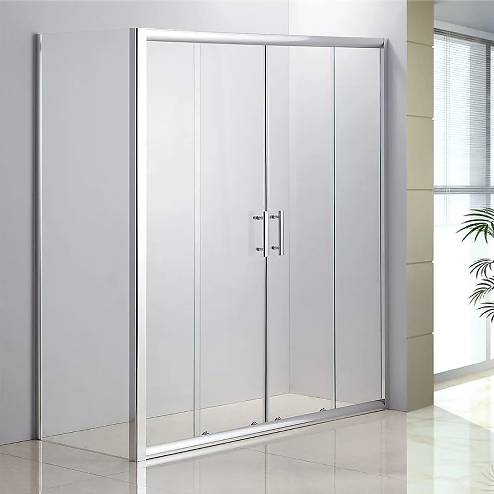 This lovely sliding double-door is sturdy and durable and is waterproof guaranteed. Its frame features magnetic seals and high-quality chrome handles, is made from polished chrome. There are no worries about rust the hardware that comes with the door is high-quality stainless steel. An on-line installation guide is available with the click of your mouse. The accompanying side panel features a universal fitting that allows for right or left-hand installation with an 18mm out of true wall adjustment.